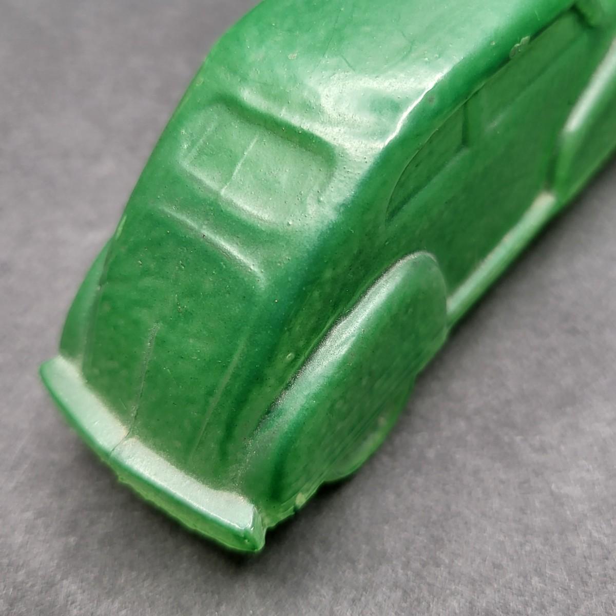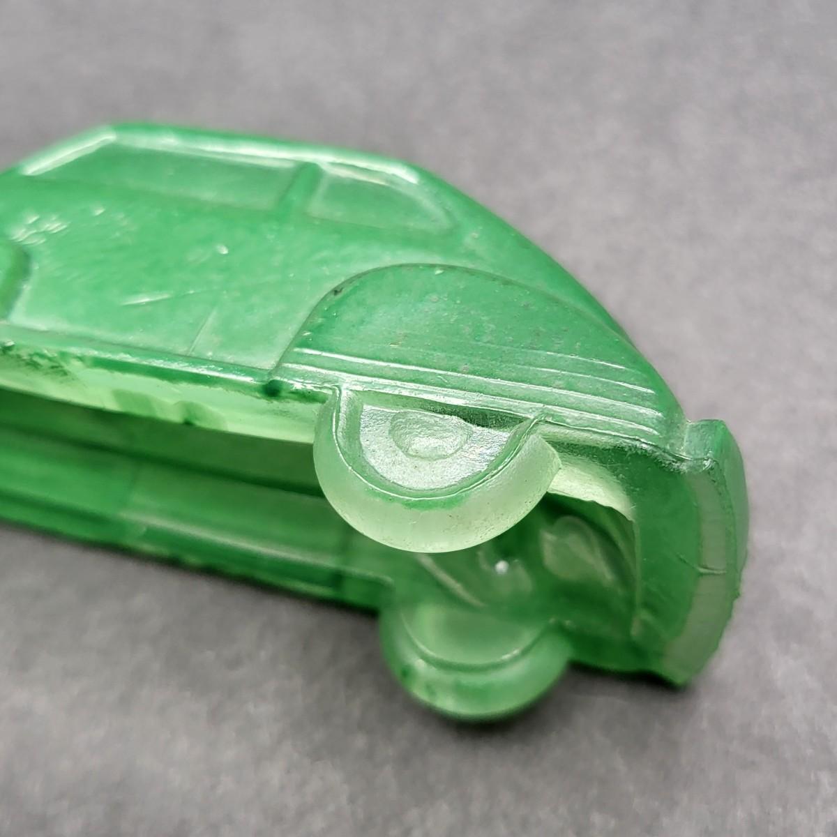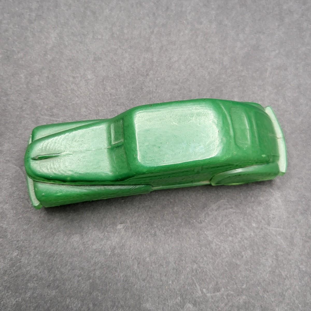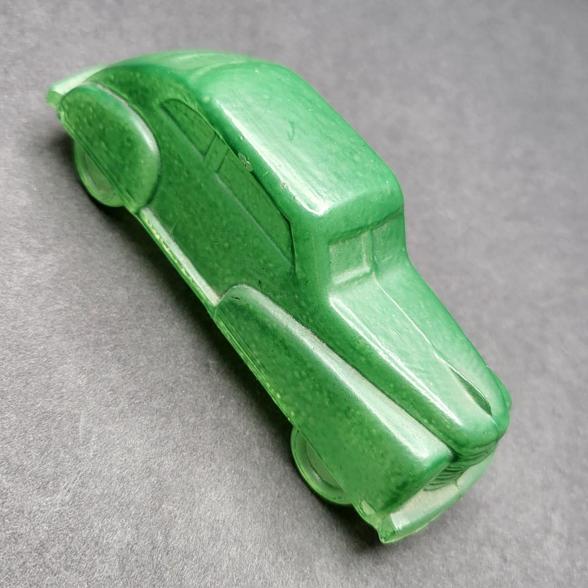 Vintage 4.5" L x 1.25" W green glass old model car.