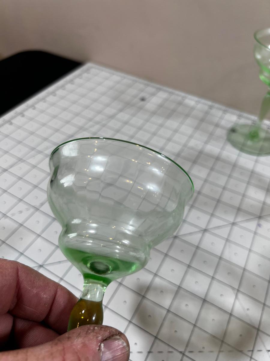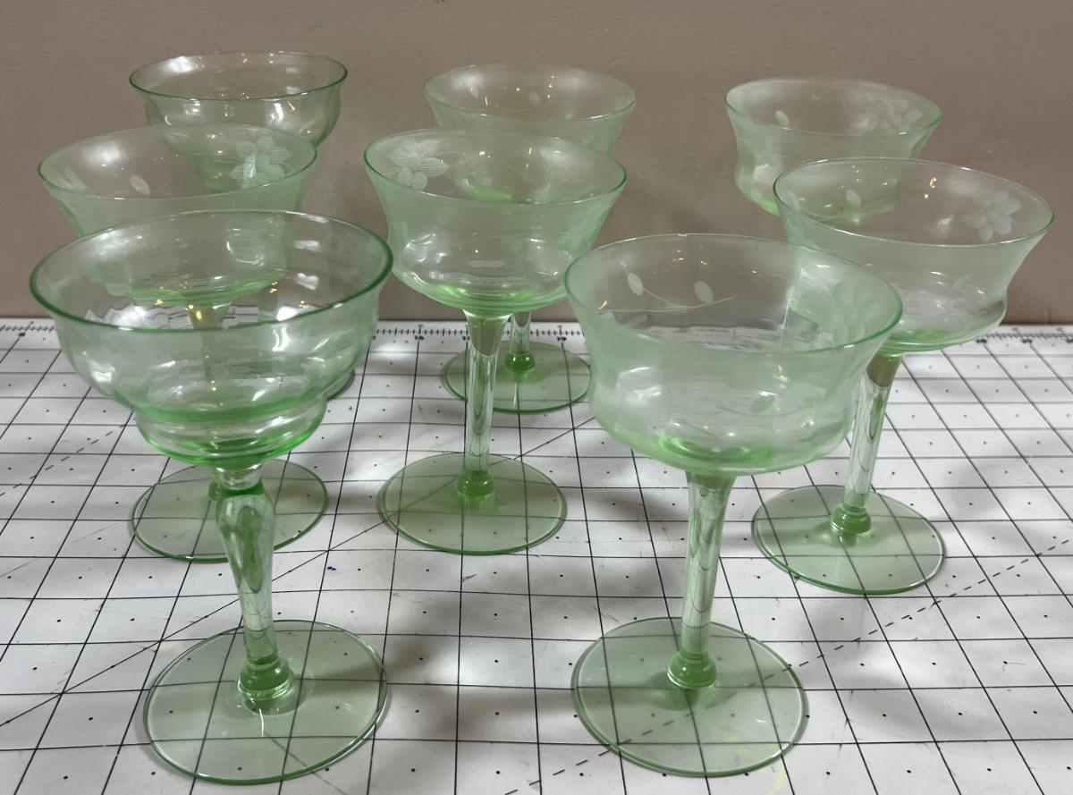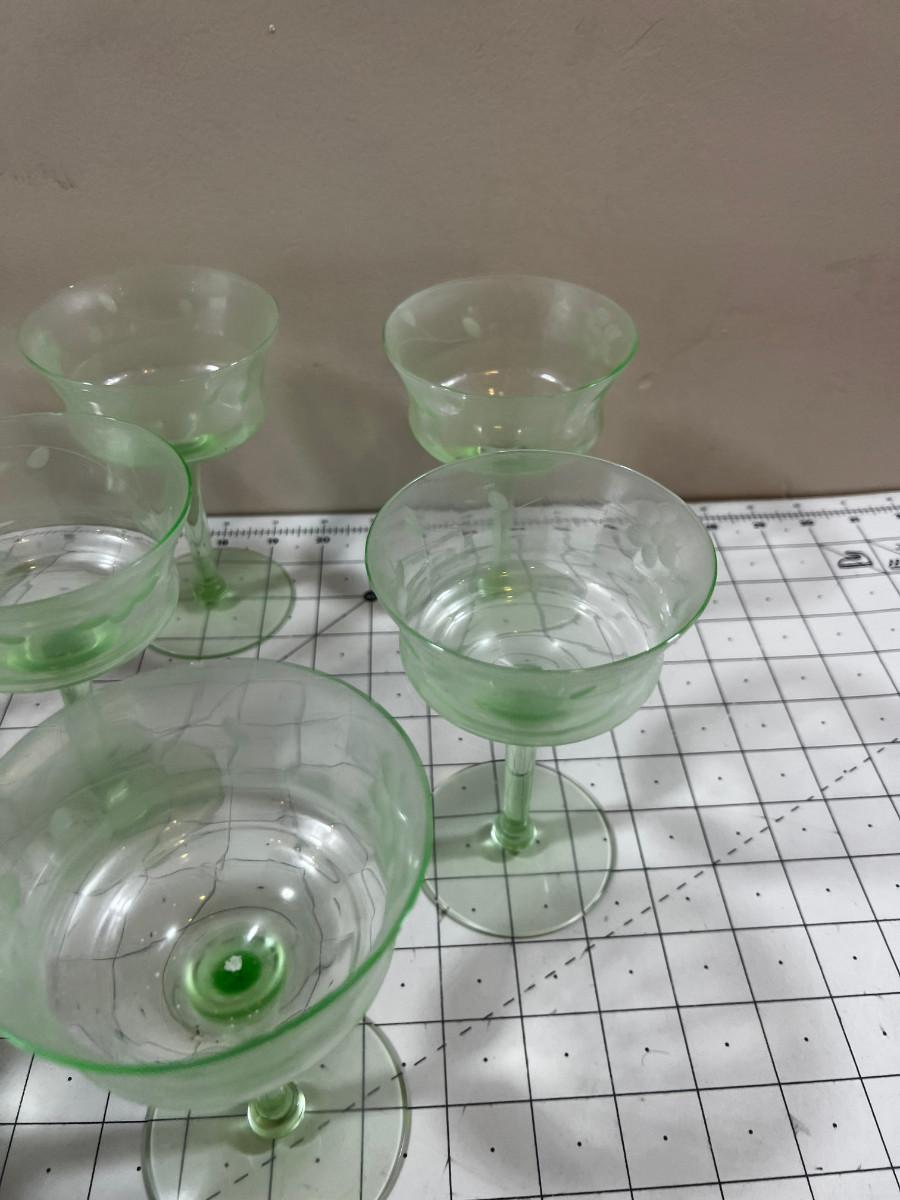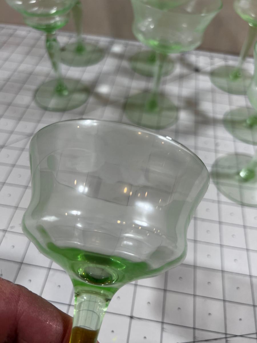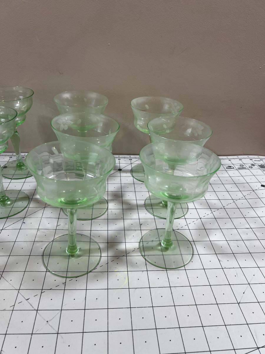 No Chipping on the rims. These are old! And in good Condition. 2 are pretty and 6 are etched!!!