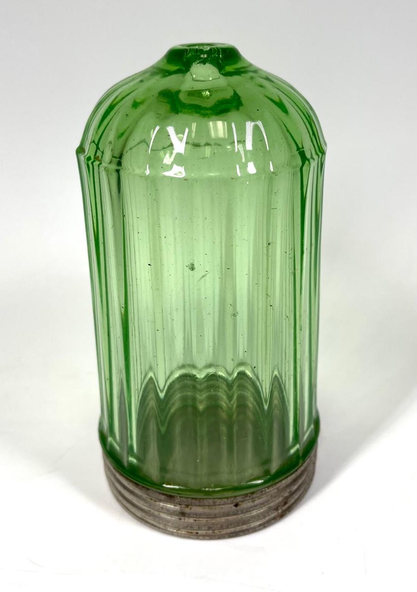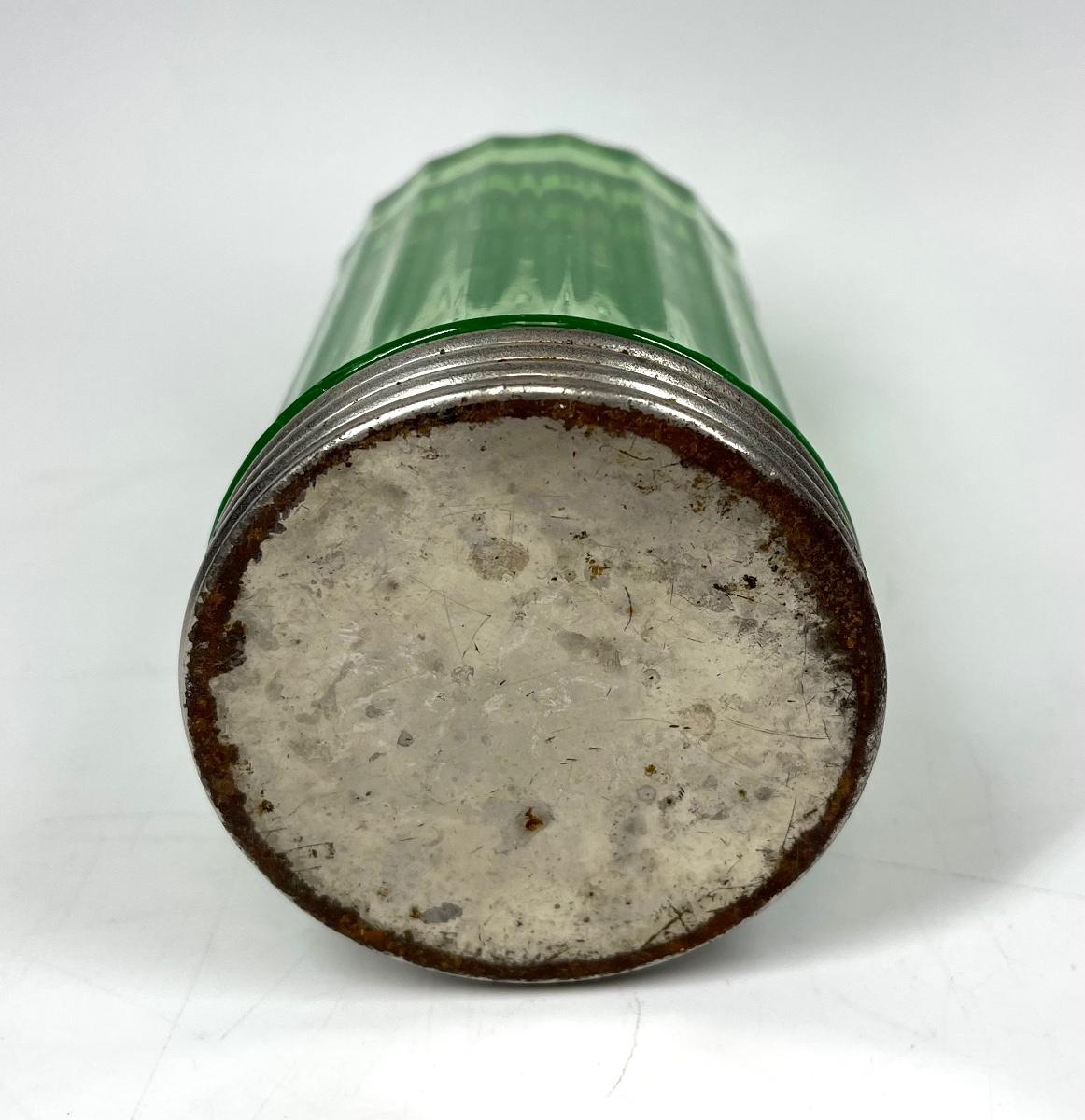 Sugar Shaker Green Glass Container with Metal Screw Top Bottom Lid