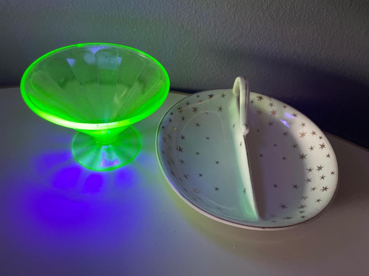 Green glass and ceramic dish