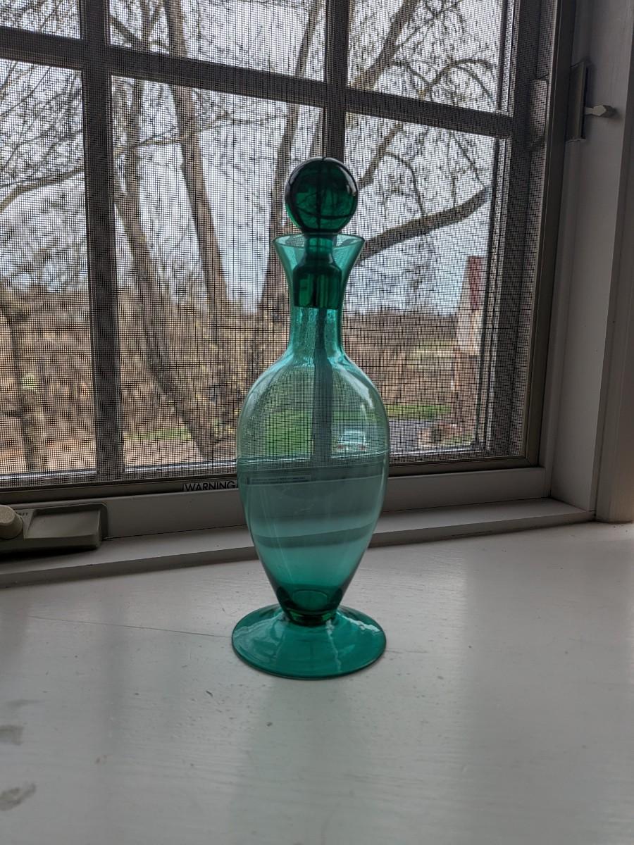 This is a smaller genie type bottle with a very heavy glass stopper and stunningly clear glass