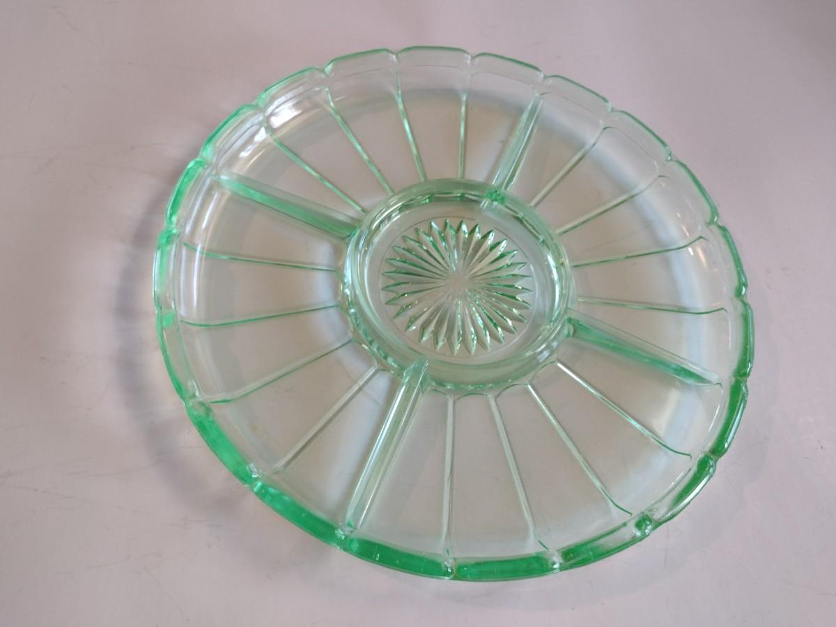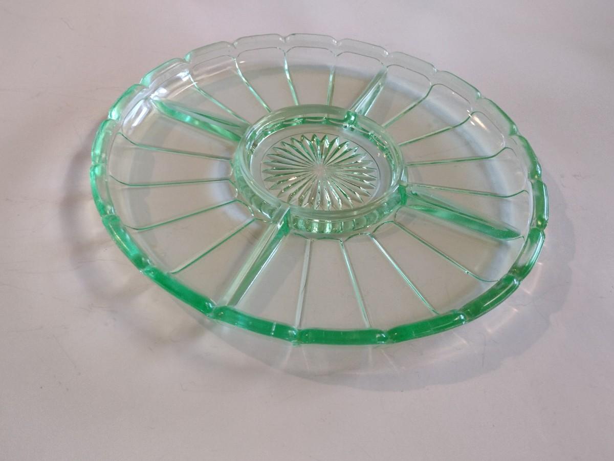 Green Glass Divided Serving Platter