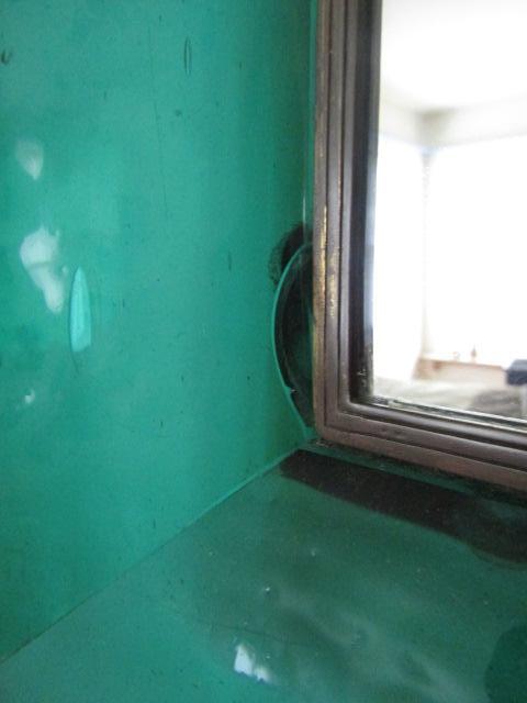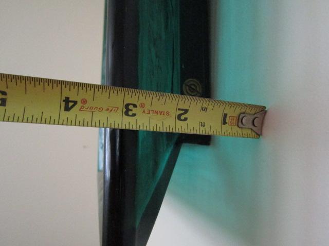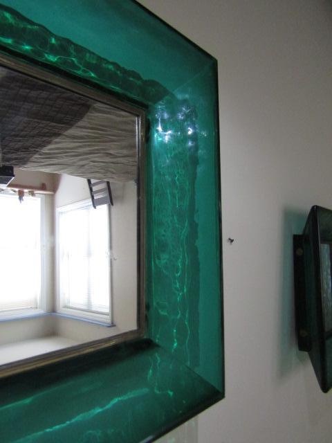 Green Glass Framed Wall Mirror 14" x 16" x 3 1/2"- Choice1. Please see pictures- mirror has a couple of small spots of darkening.