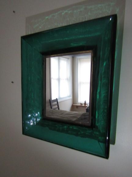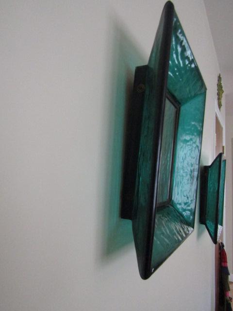 Green Glass Framed Wall Mirror 14" x 16" x 3 1/2"- Choice 1