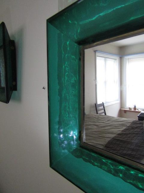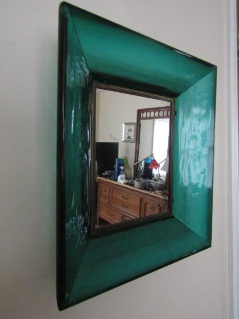Green Glass Framed Wall Mirror 14" x 16" x 3 1/2"- Choice 2