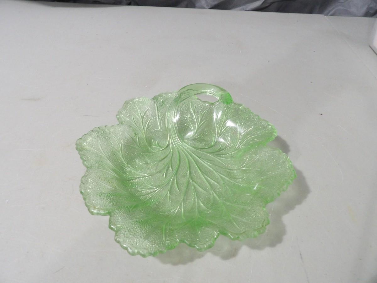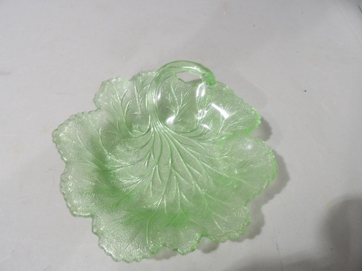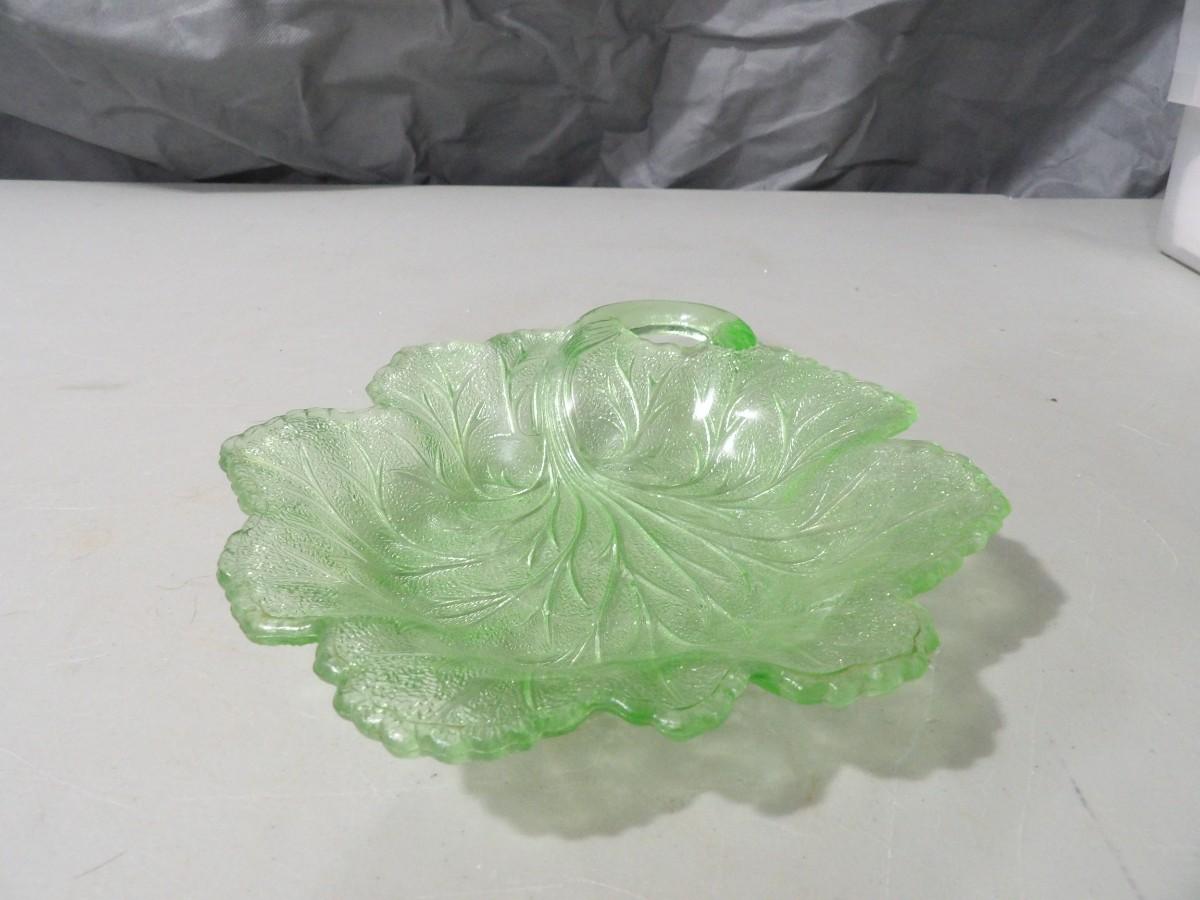 Green Glass Leaf Candy Dish