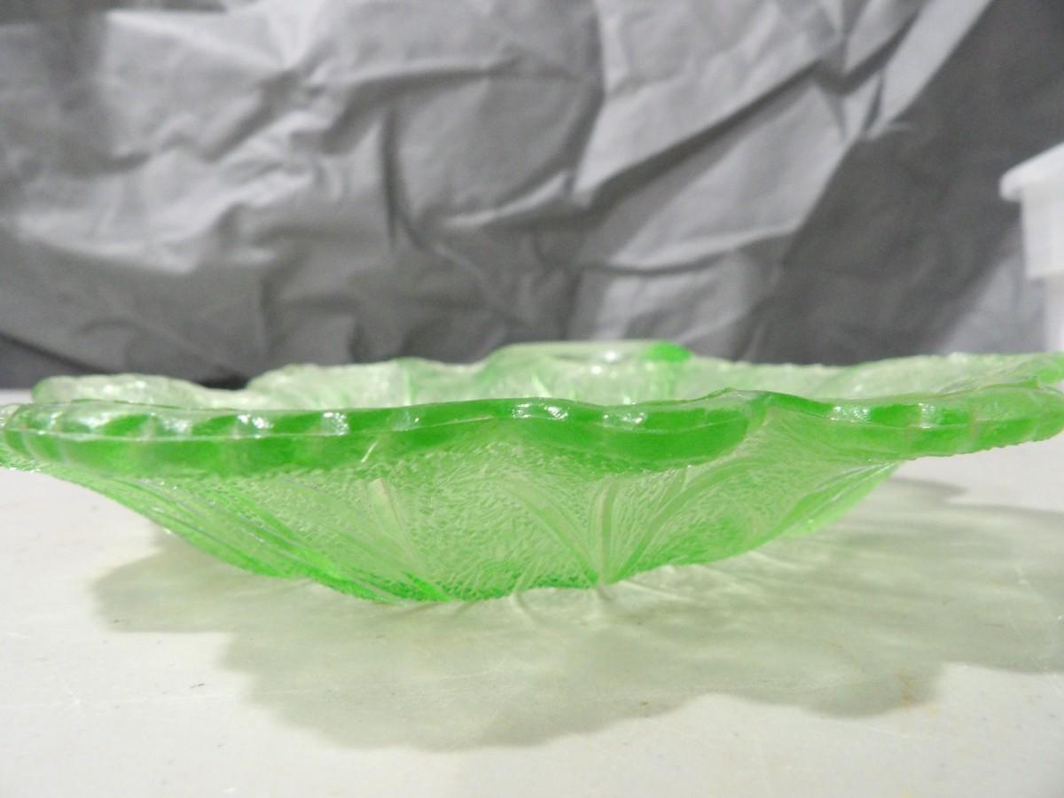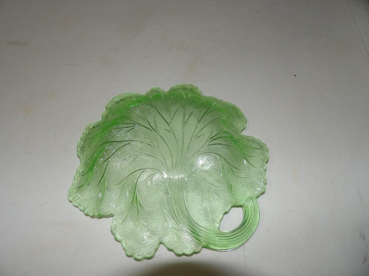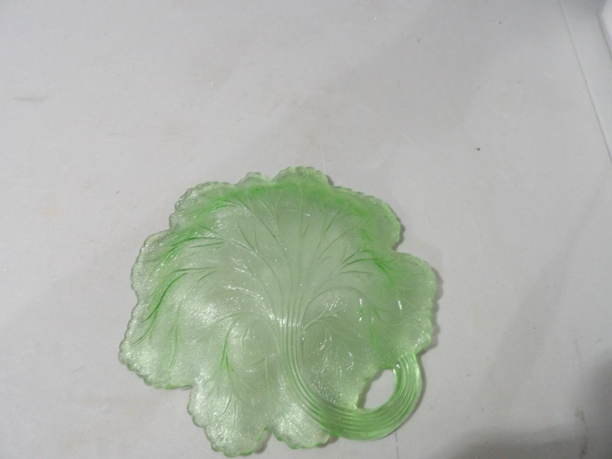 Green Glass Leaf Candy Dish