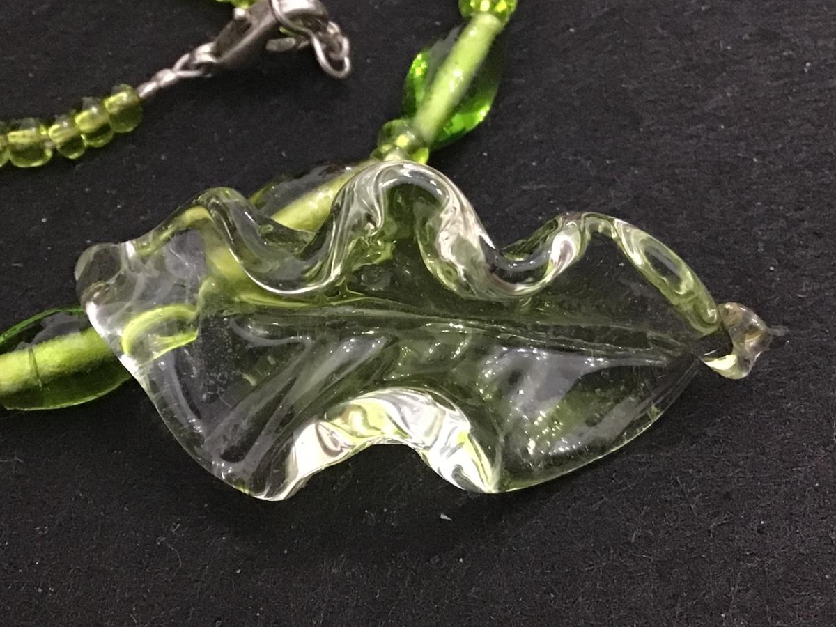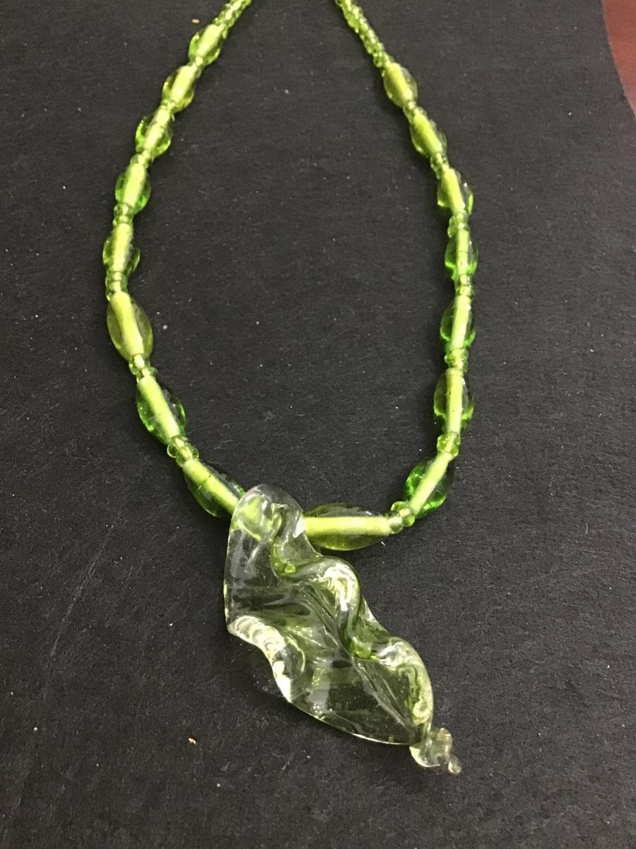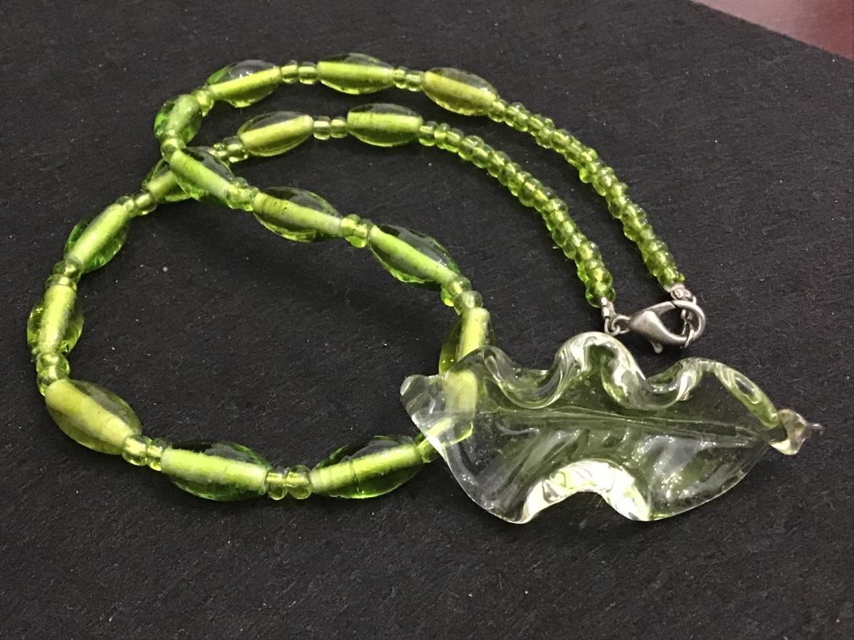 Green Glass Leaf Necklace