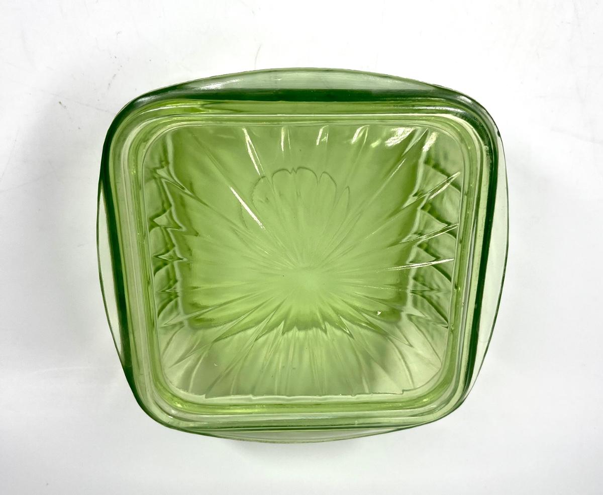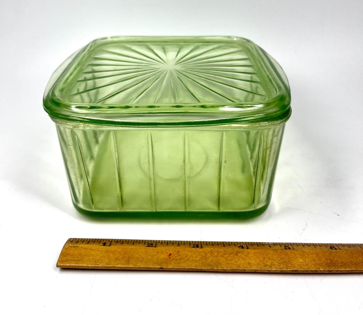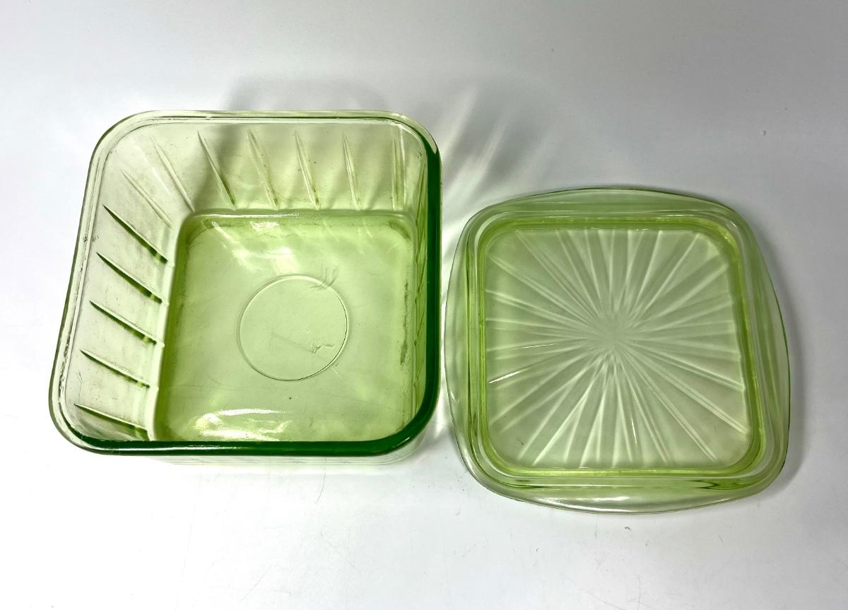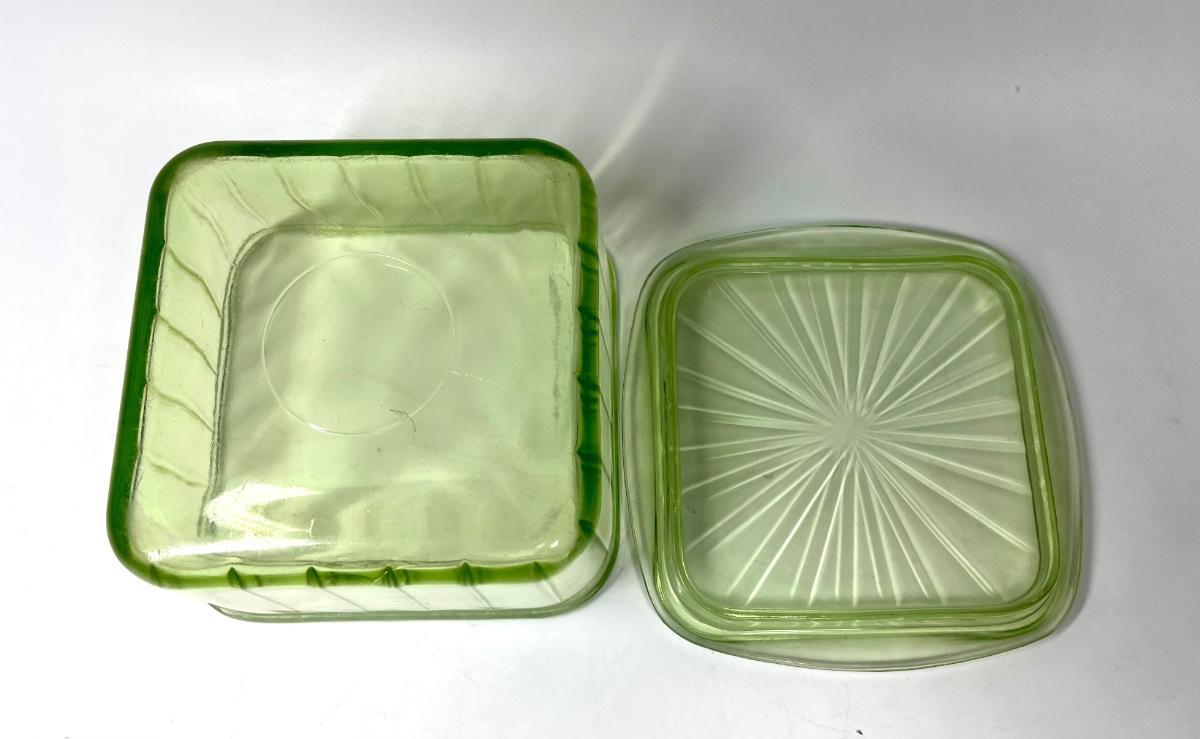 Vintage Square Vaseline Uranium Glass Lidded Refrigerator Storage Dish