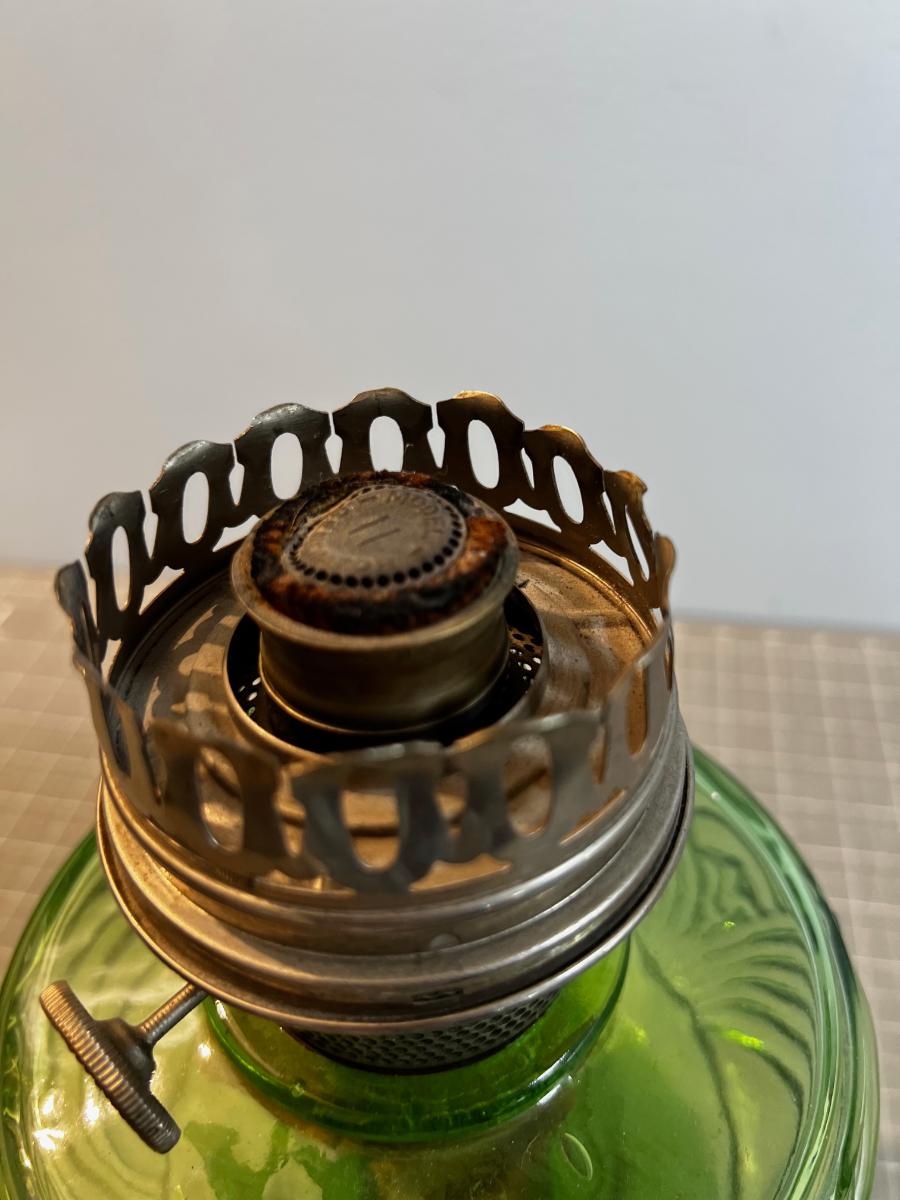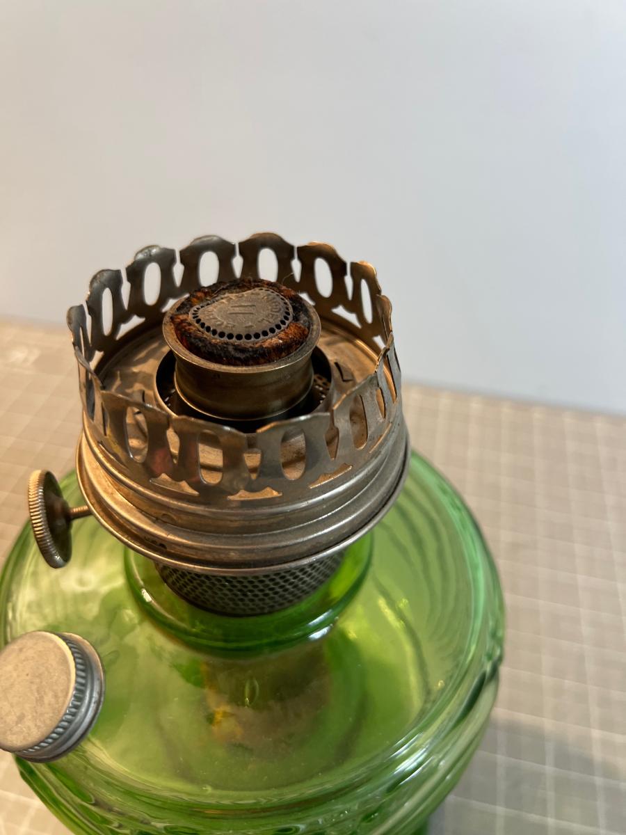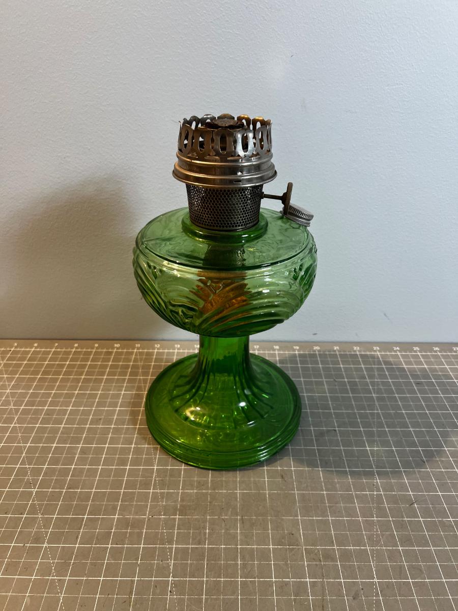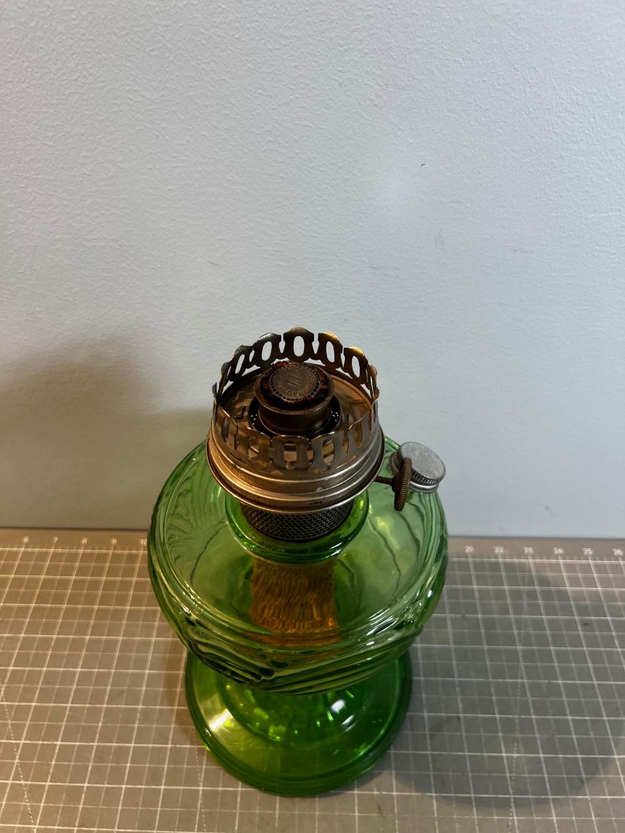 Green GLASS OIL LAMP! This is the Real Deal