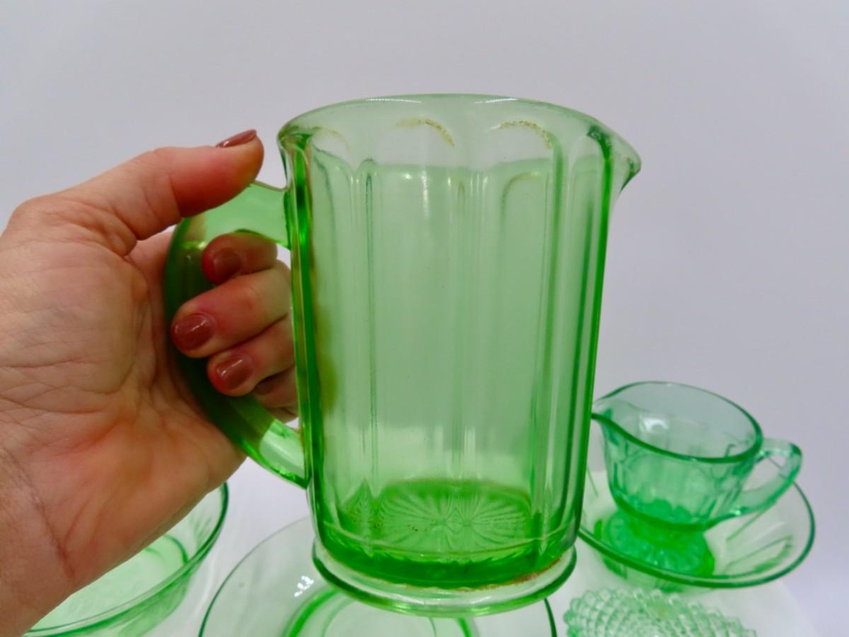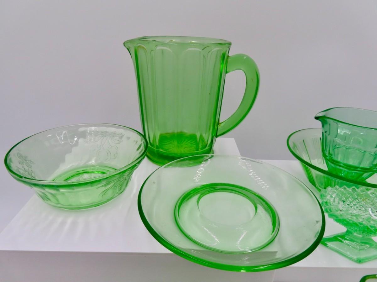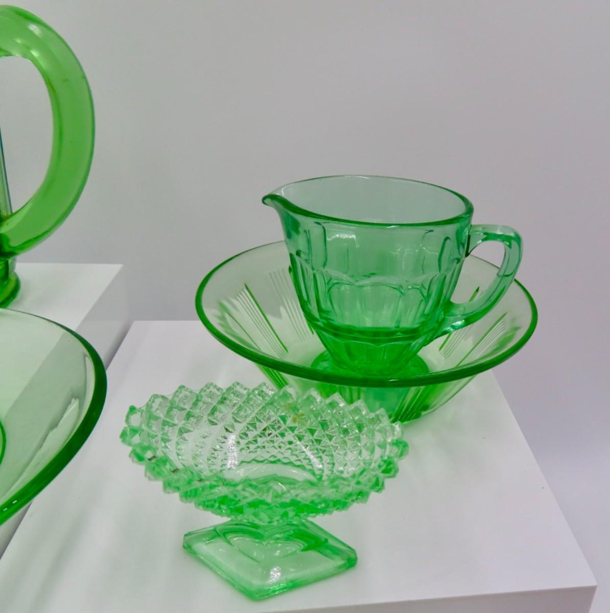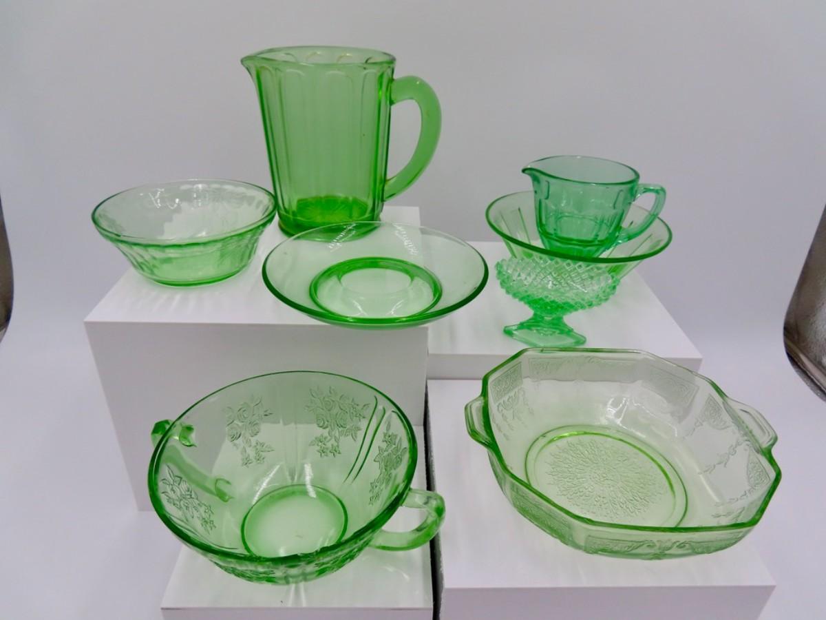 Green Glassware Collection (7 pieces) Possibly Uranium?