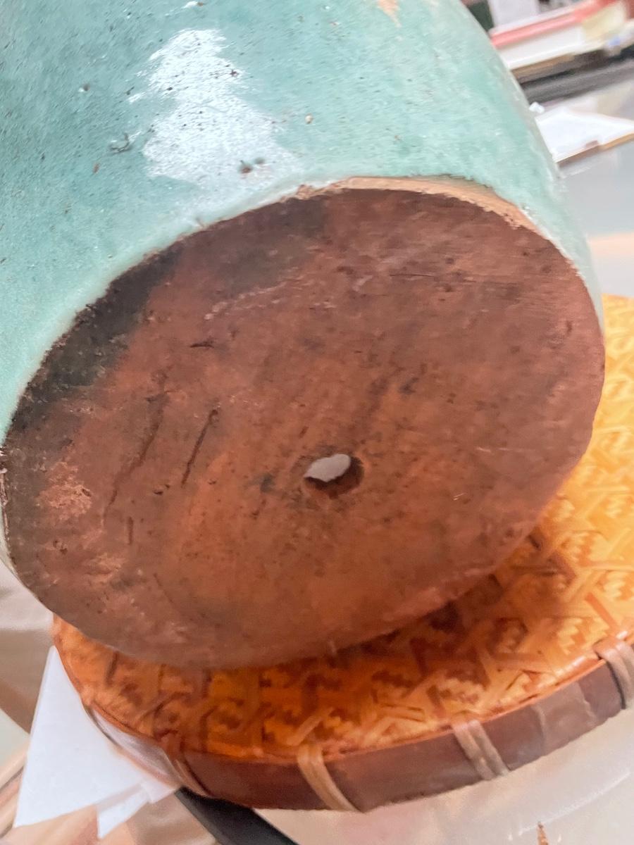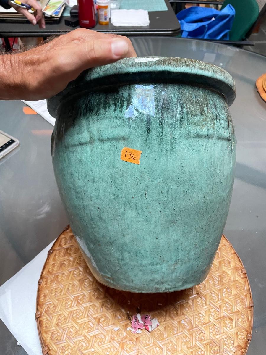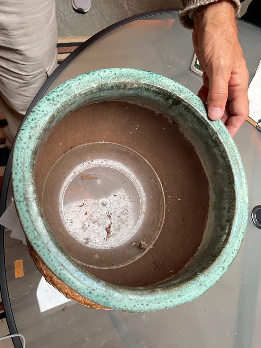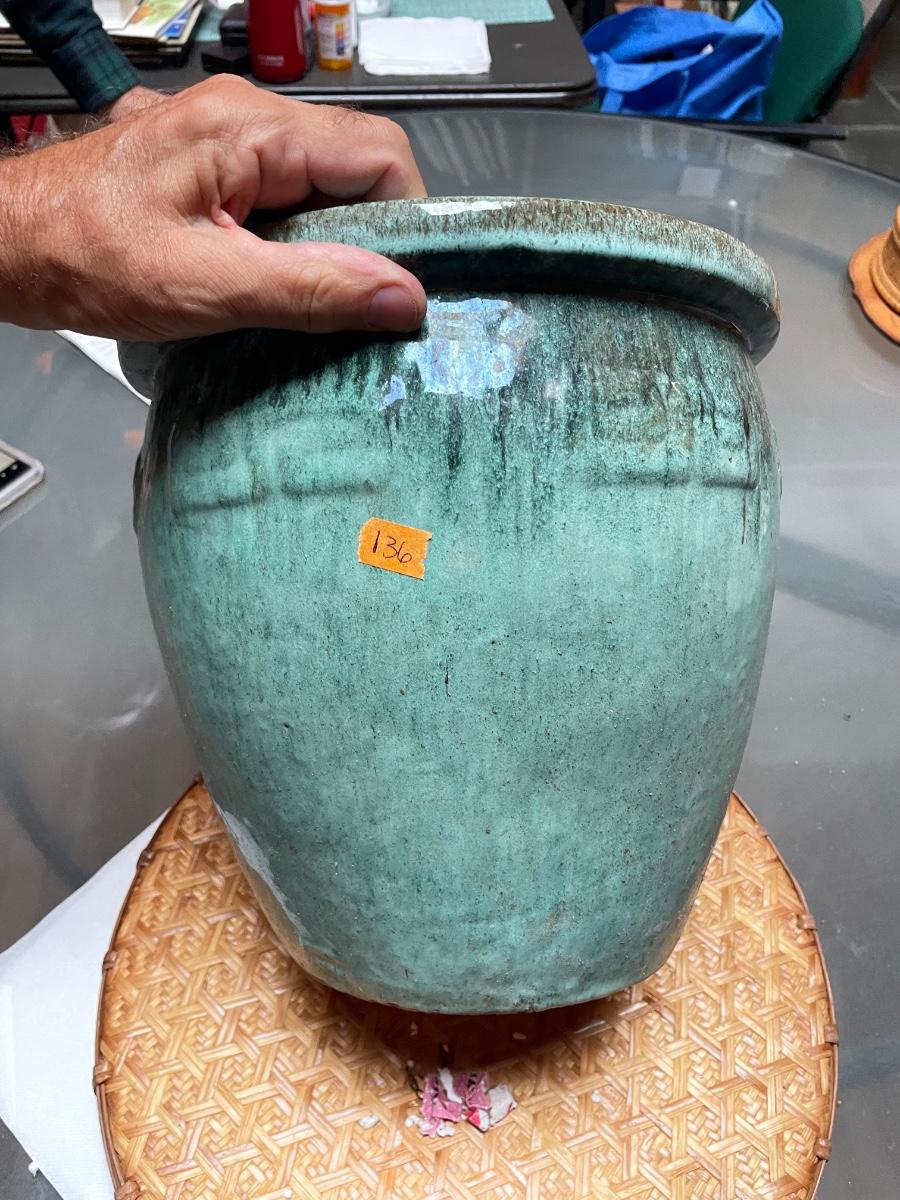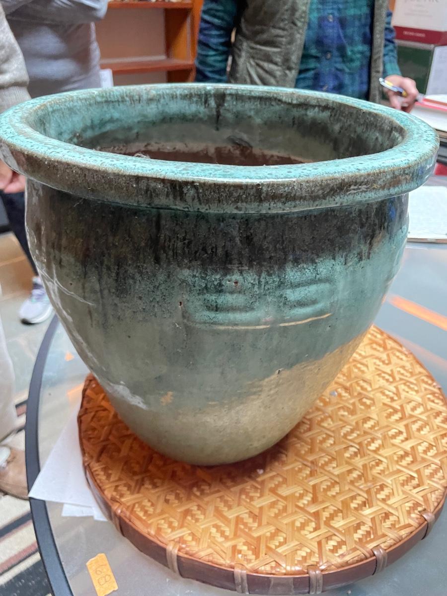 Green GLAZED Ceramic Plant Pot with Greek Keys around