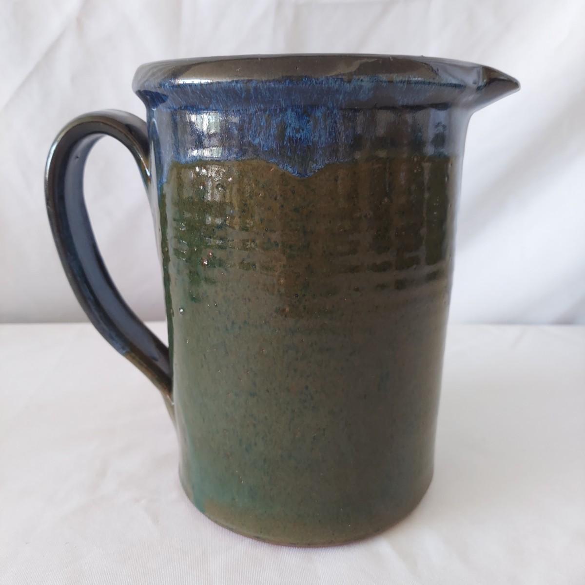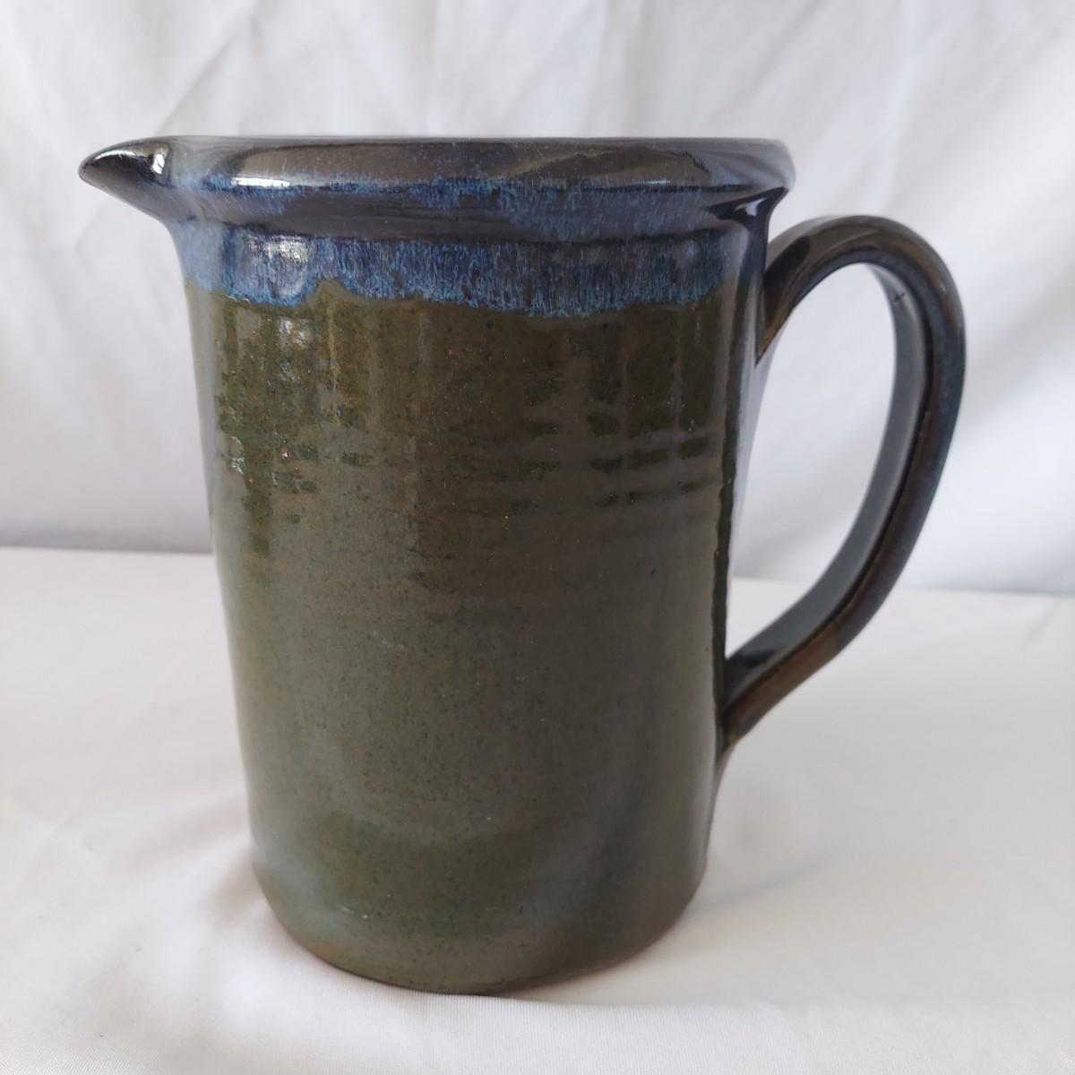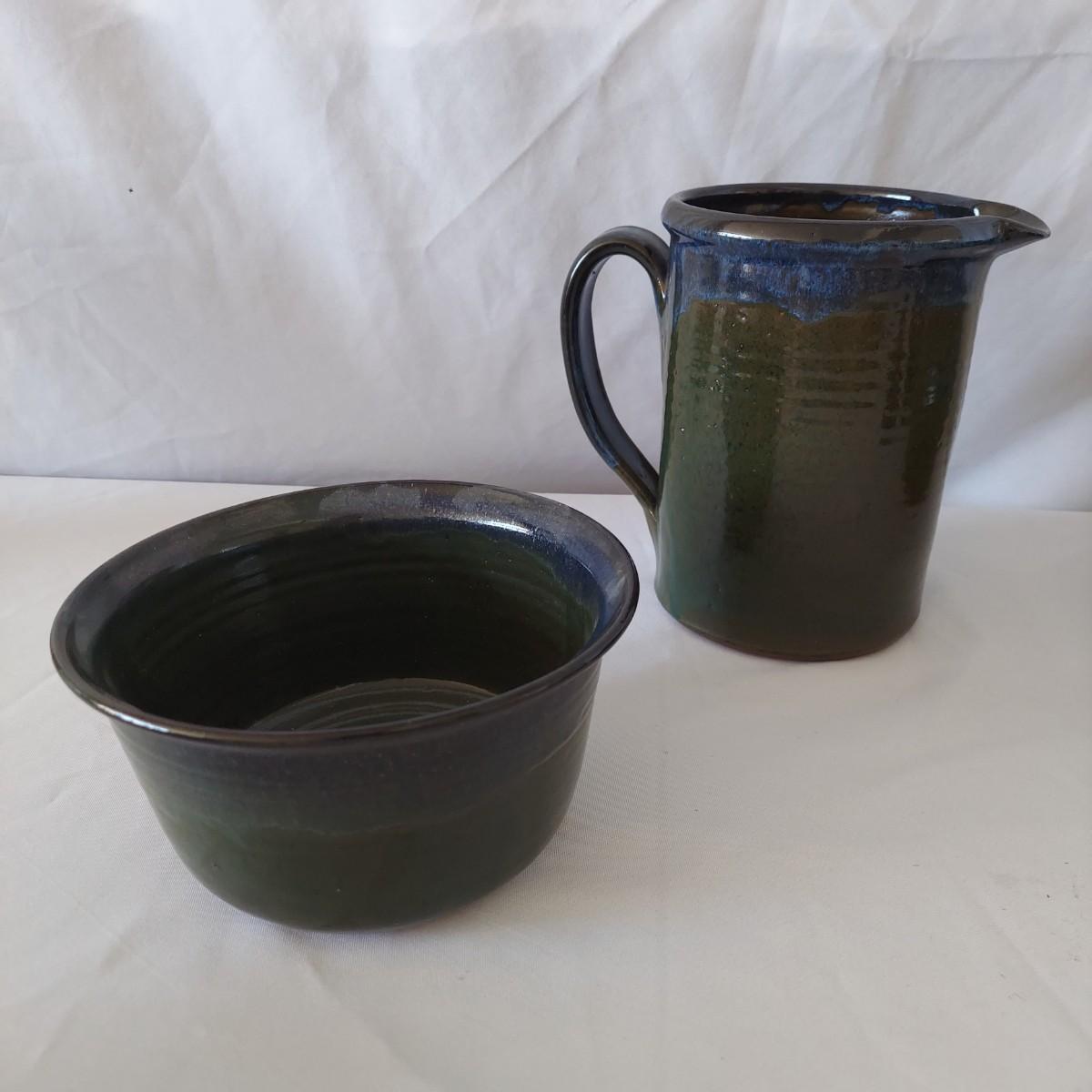 Pitcher and bowl that appear to be local to North Carolina and marked J B Calhoun Traditions on bottom. The pitcher measures 5.5” x 8” x 8"H. The bowl measures 7” x 4"H. Also included are three vases and three small bowls with other markings. Please see photos for details. Shipping available