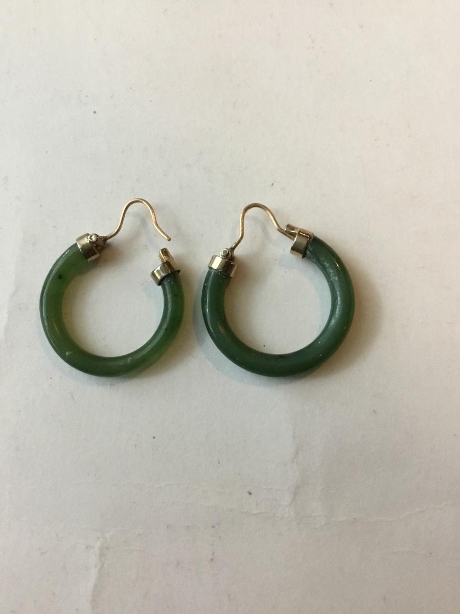Green hoop earrings gold tone fittings