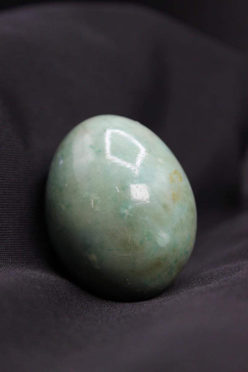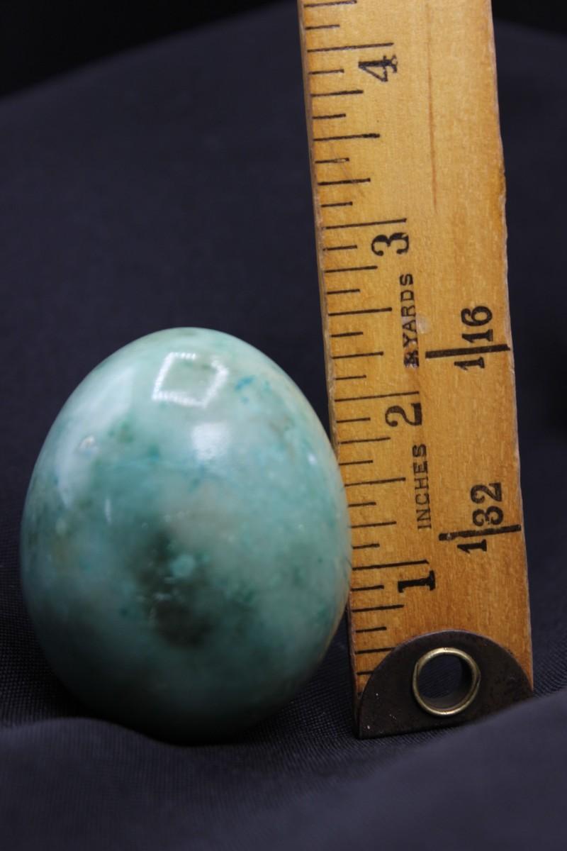Green jadeite agate stone egg. Good condition, no chips. Has nice color variation. About 2.5" size.