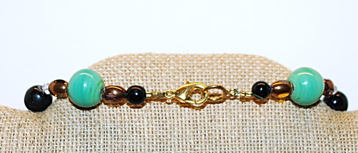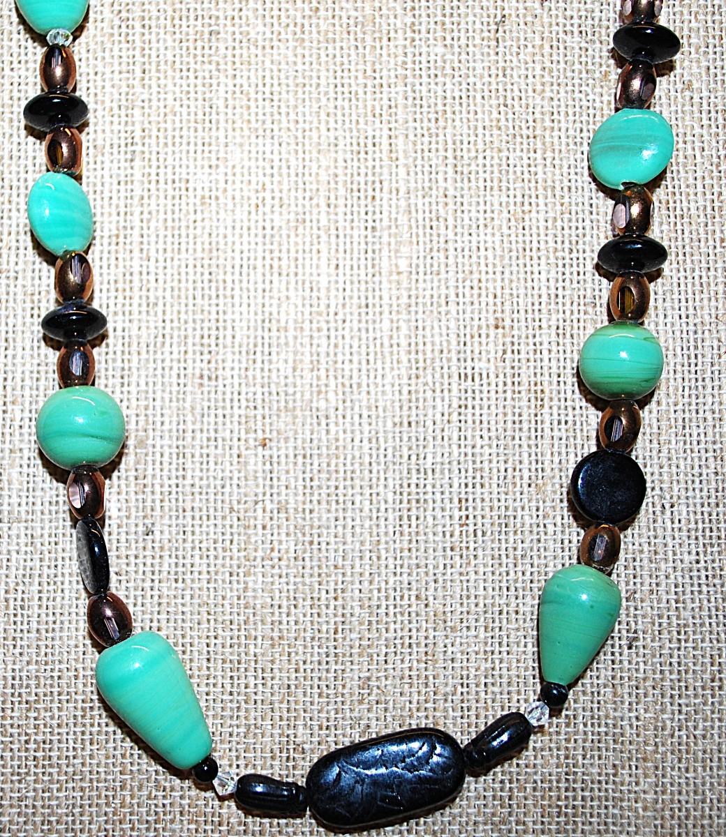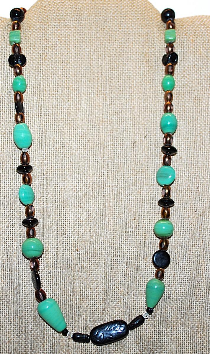 Green Jade Style Stones NECKLACE with Browns & Blacks Highlight Stones and a Lobster Clasp 22" L