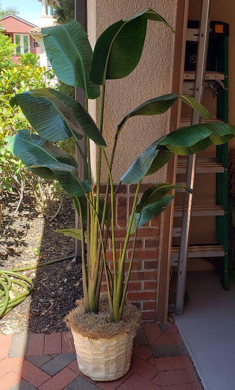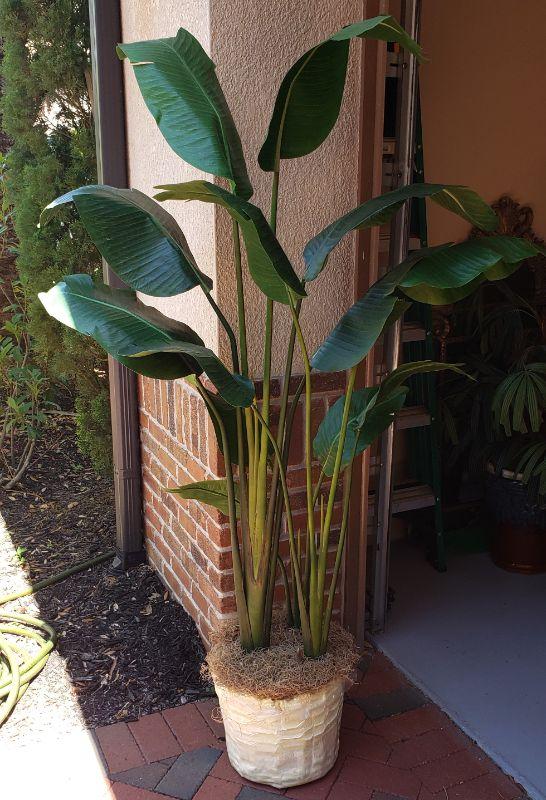 Green Leaf Artificial Plant with White Vase