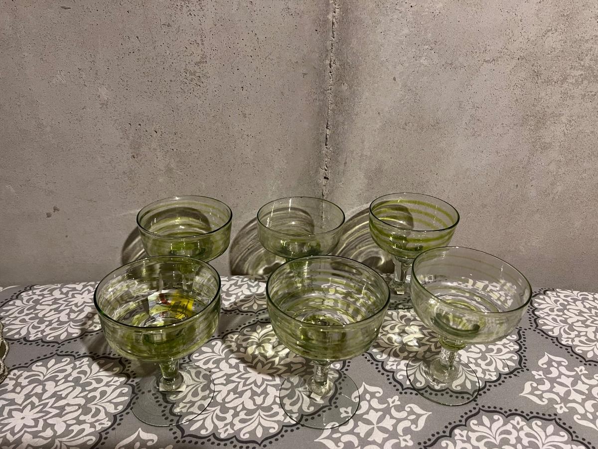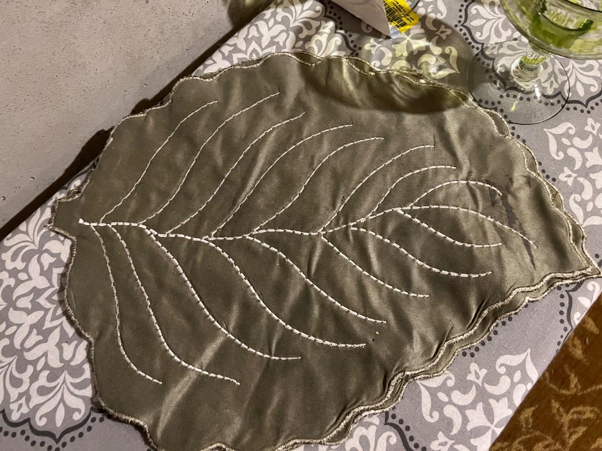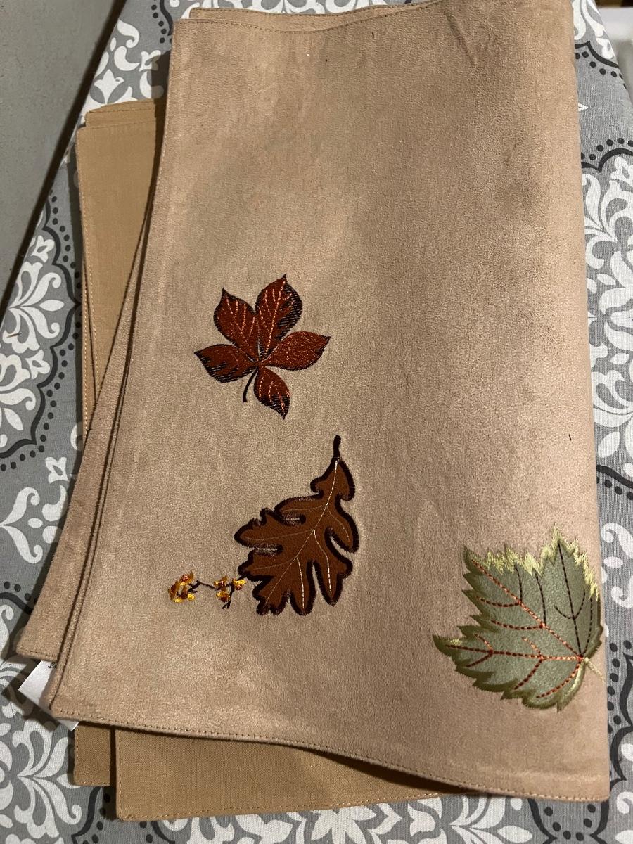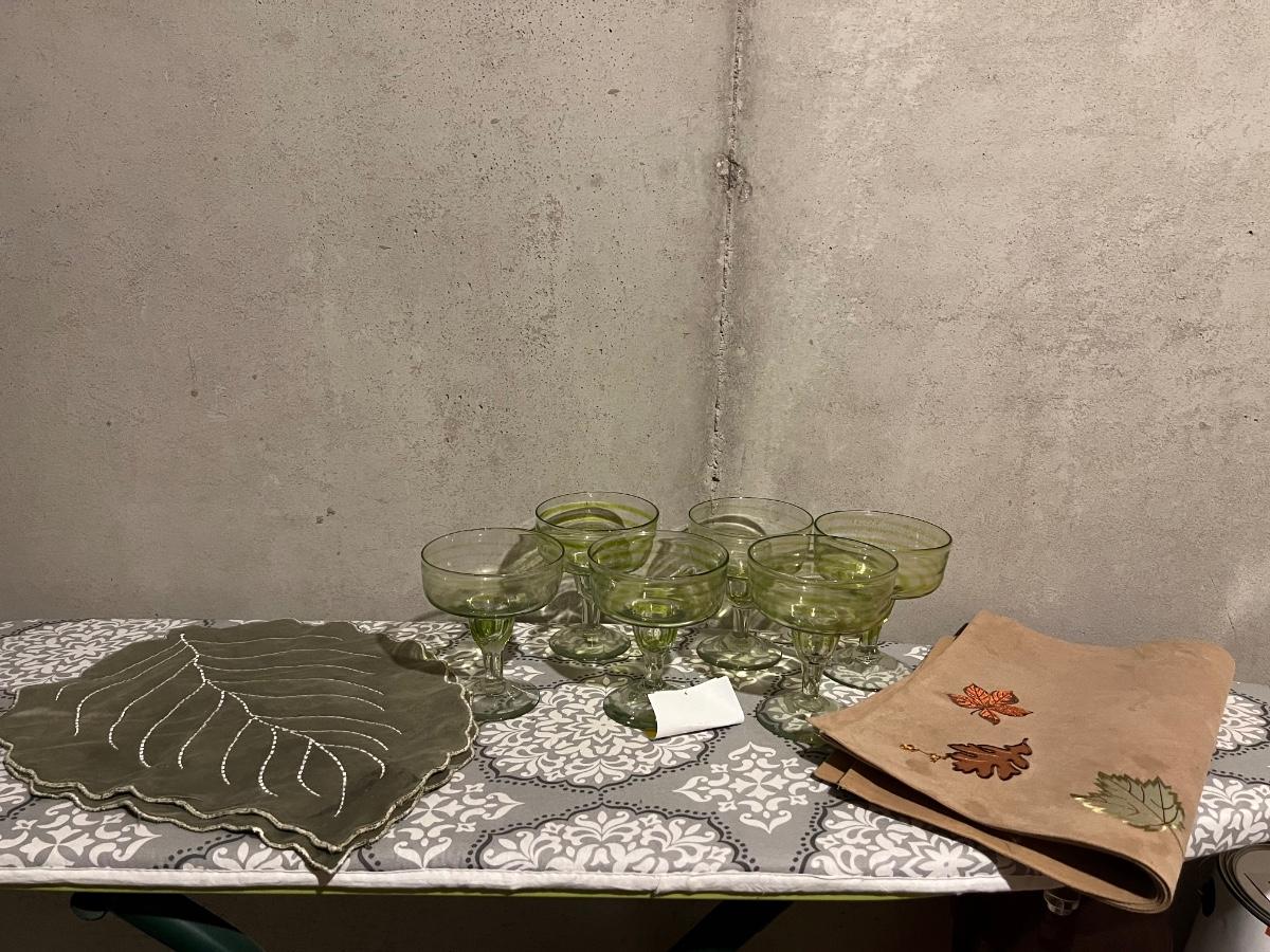 GREEN LEAF PLACE MATS. SET OF 6 GREEN GLASSES, AND FALL PLACE MATS