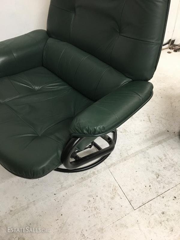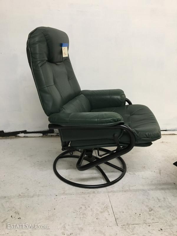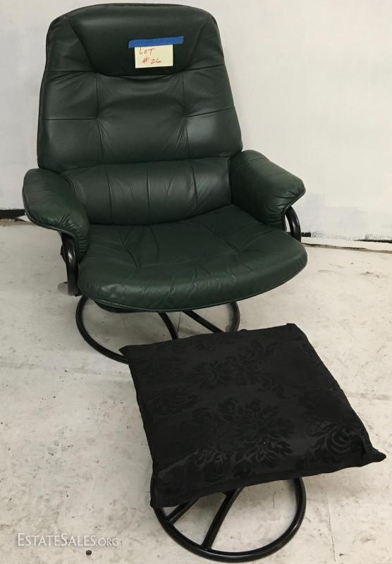 Green lounge chair with ottoman 1 of 2. Lot#26