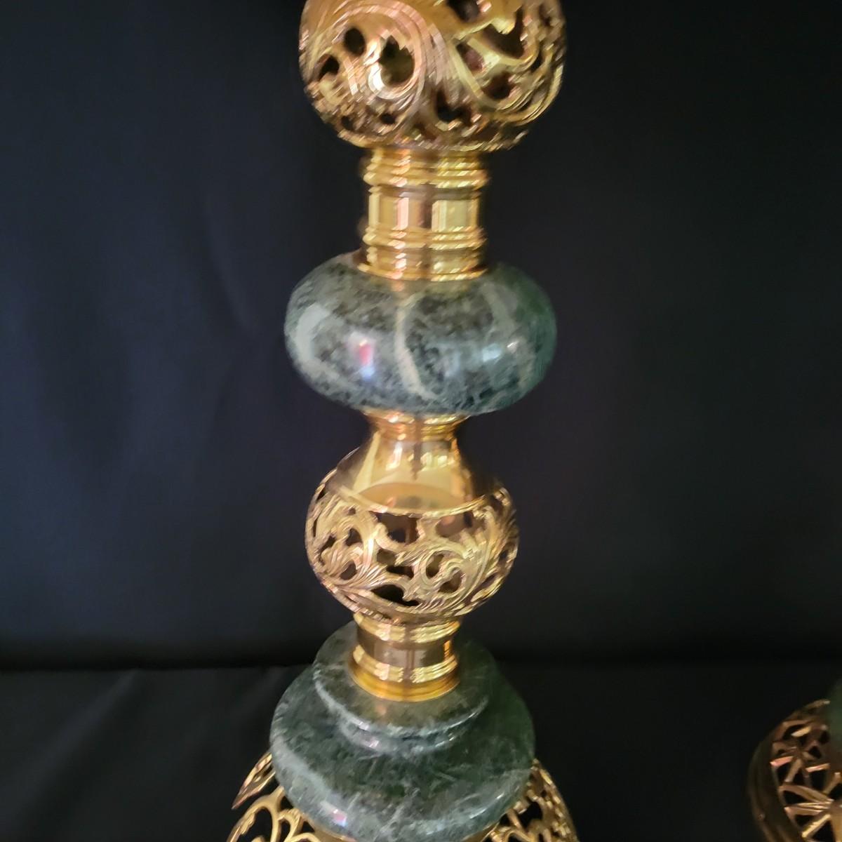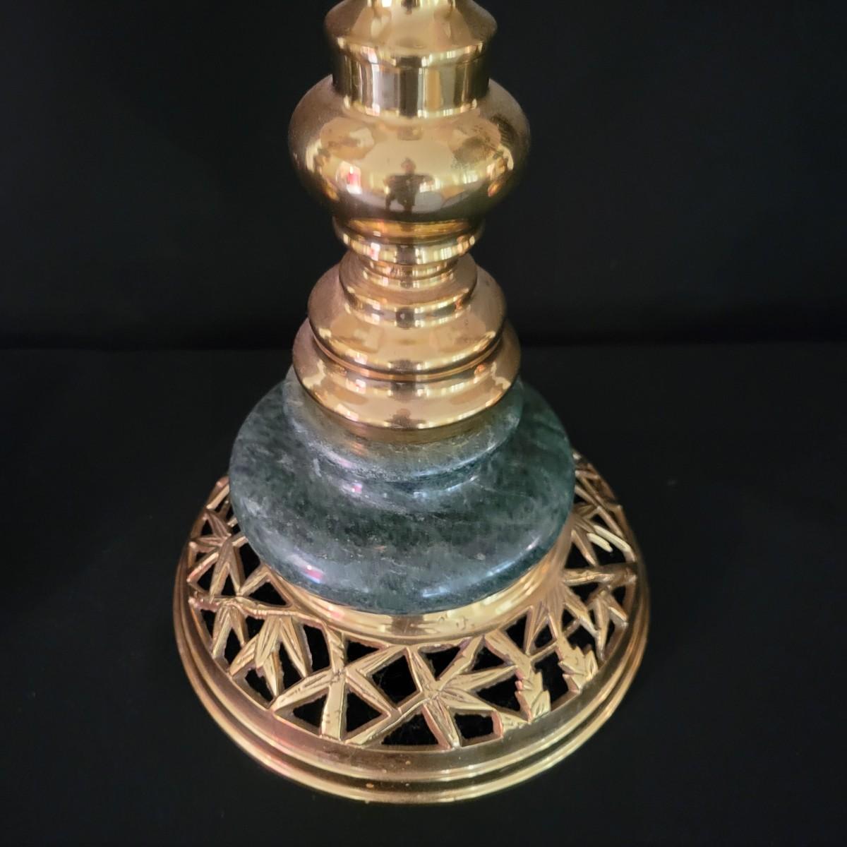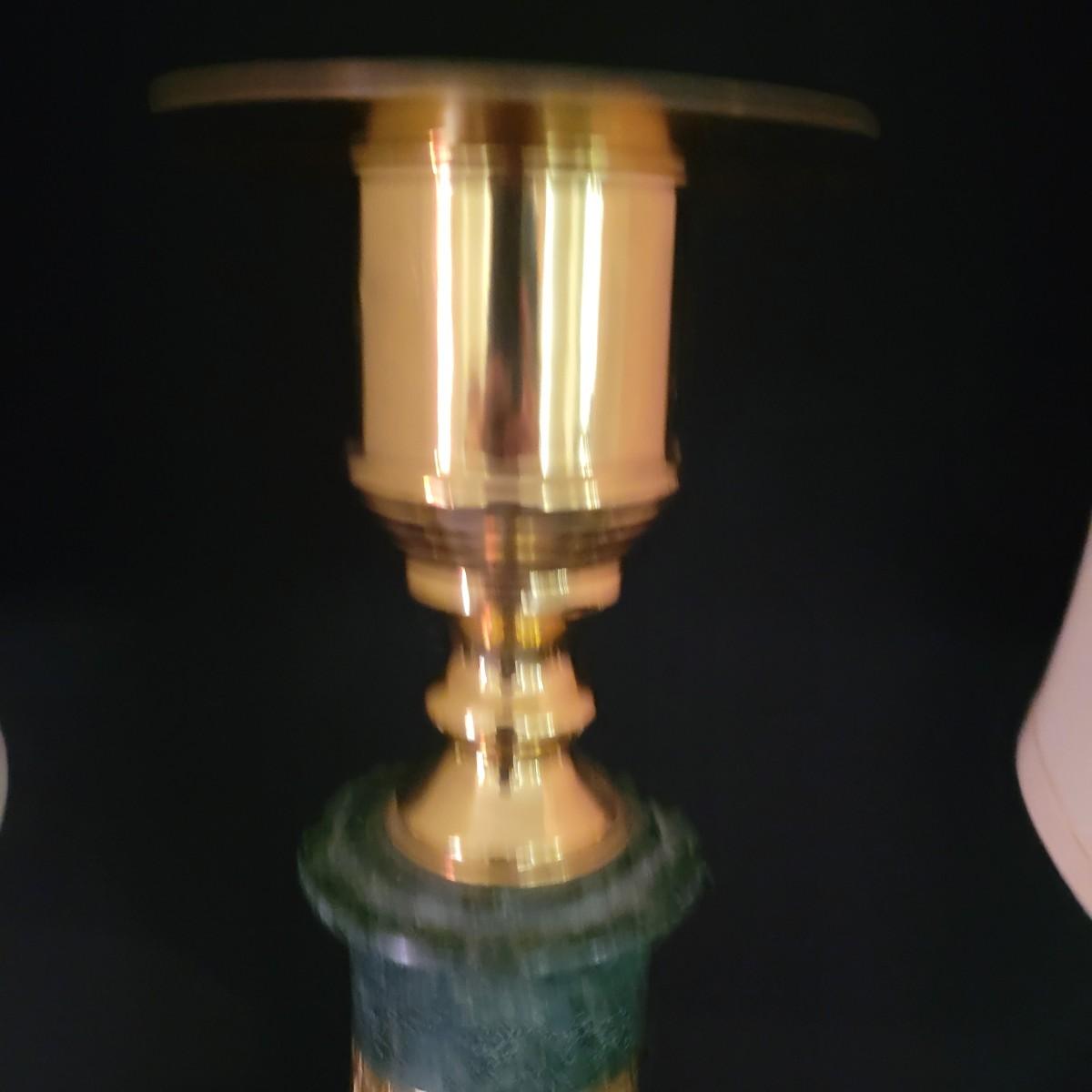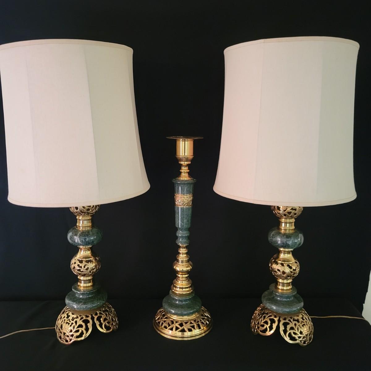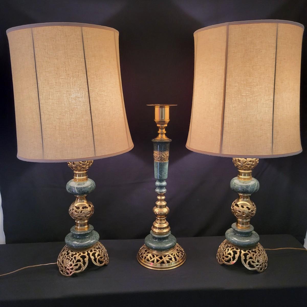 Green Marble and Brass Lamps with a Matching Candlestick (D-DW)