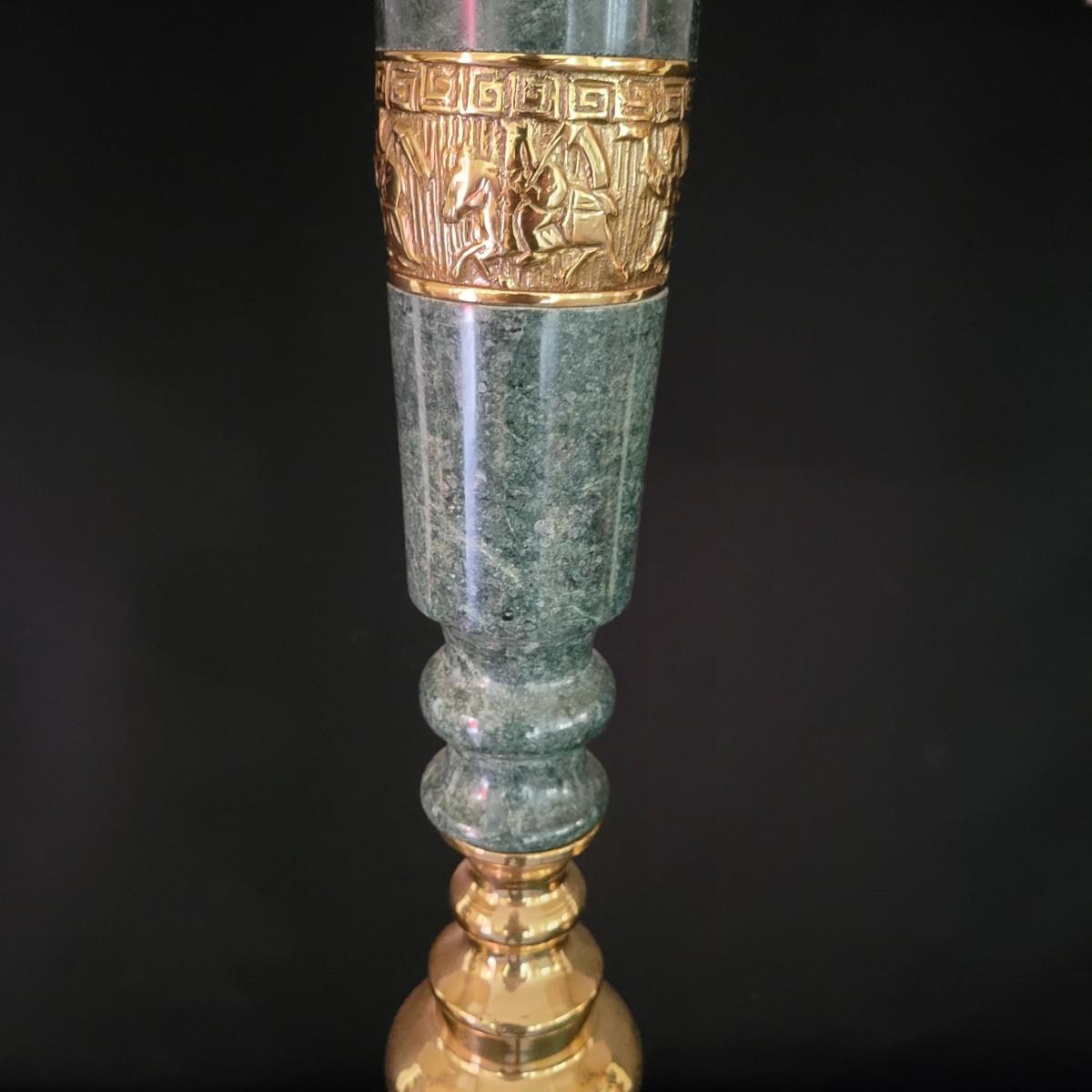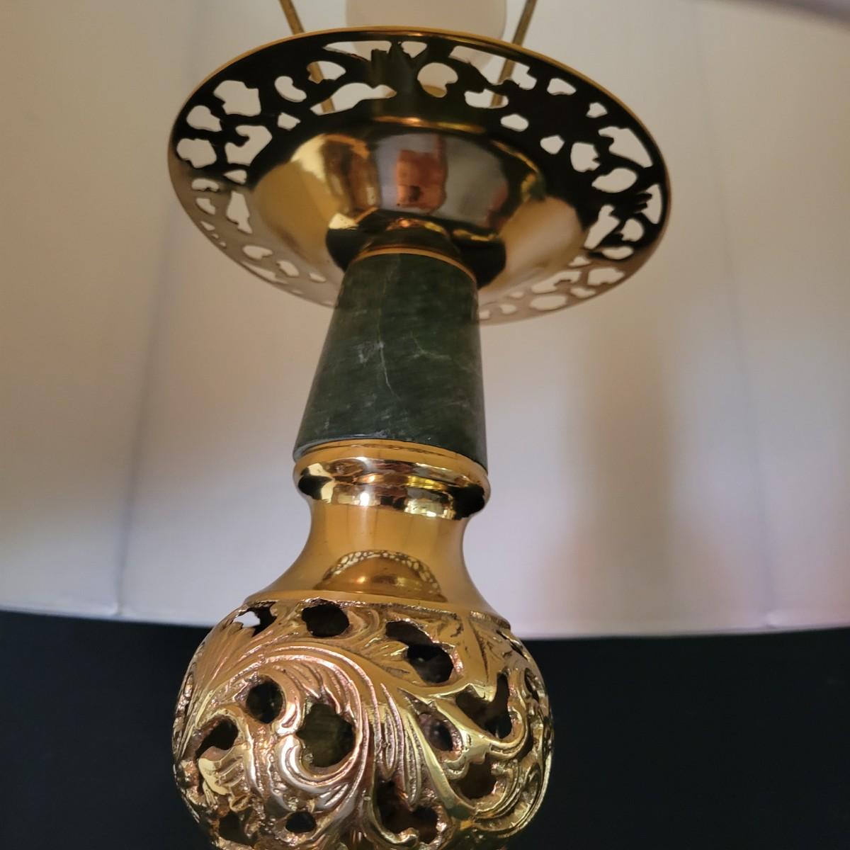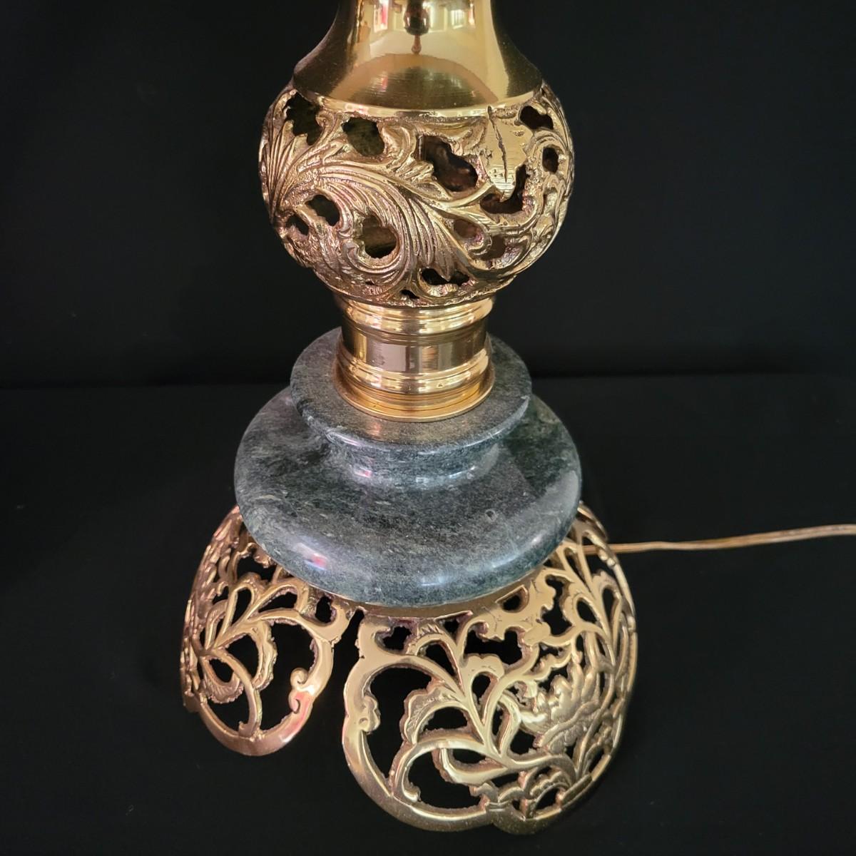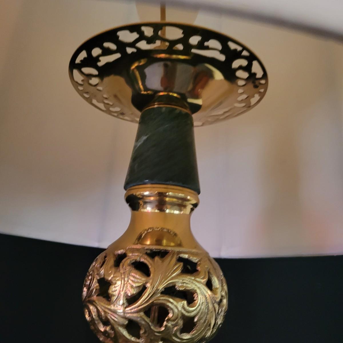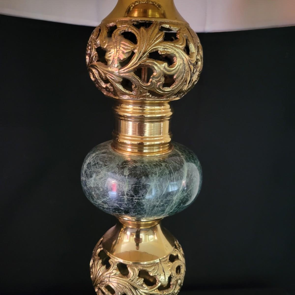 Green Marble and Brass Lamps with a Matching Candlestick (D-DW)