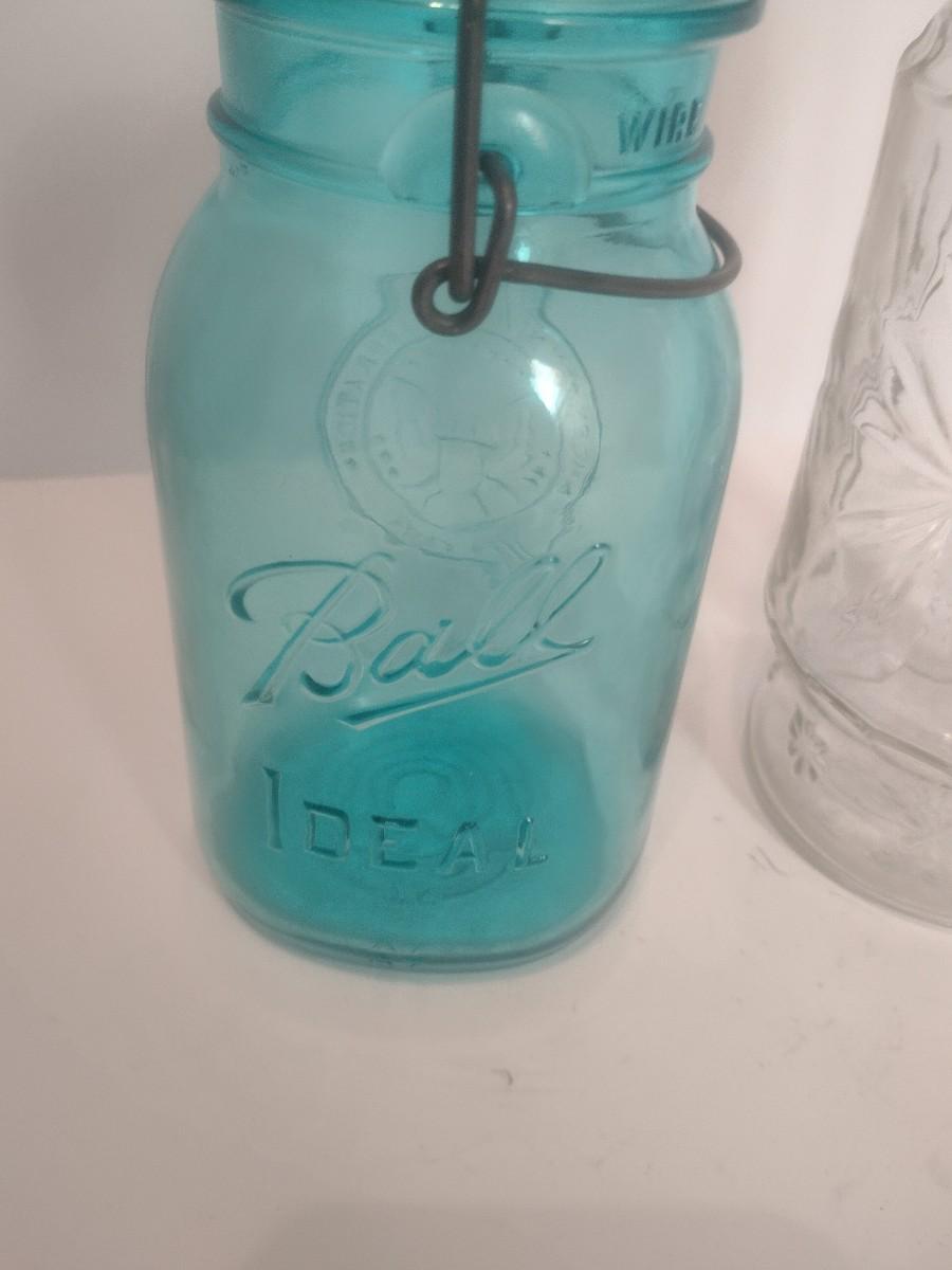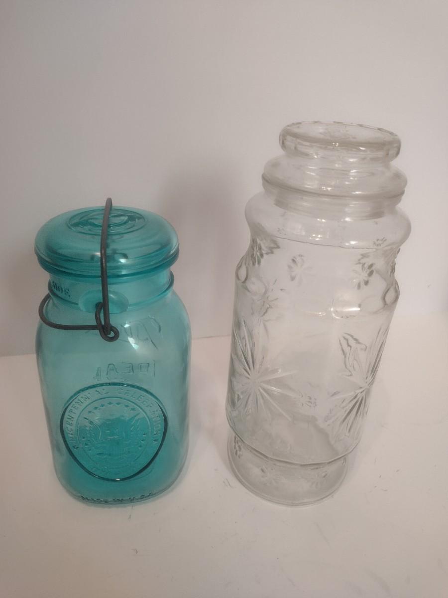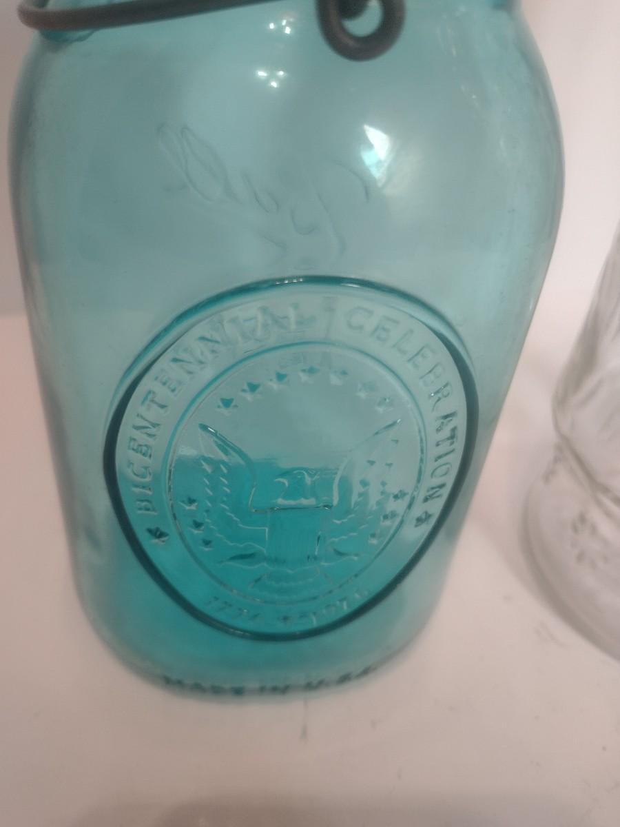 Green Mason Ball Bicentennial Jar and Mr. Peanut Jar