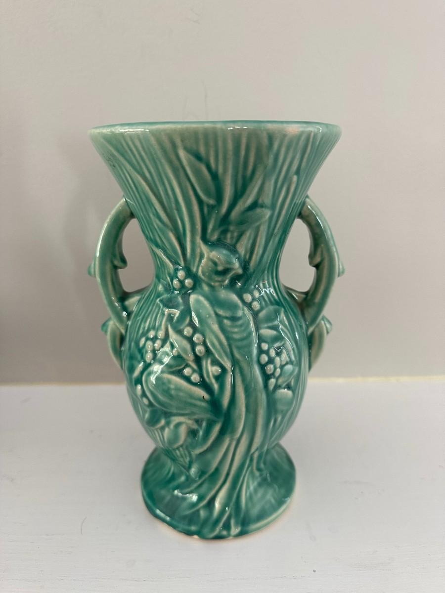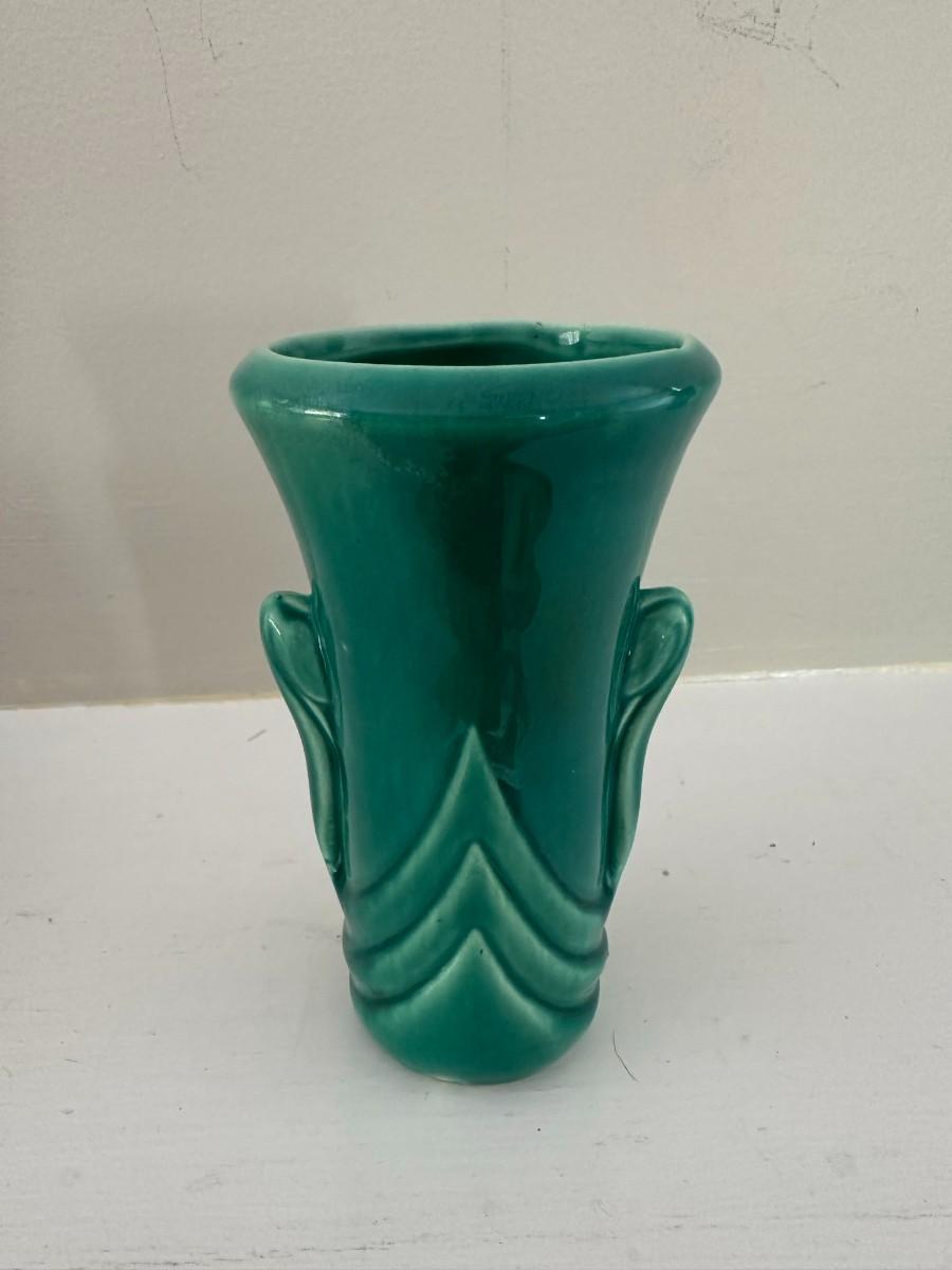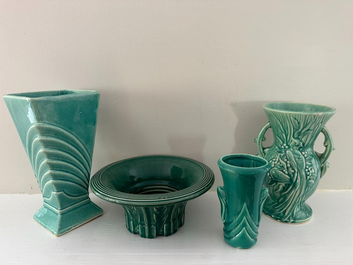 8"h McCoy Hourglass Vase, 9"h Flared McCoy Vase, 5.5"h Vase - USA, 8"w x 4"h Green Planter