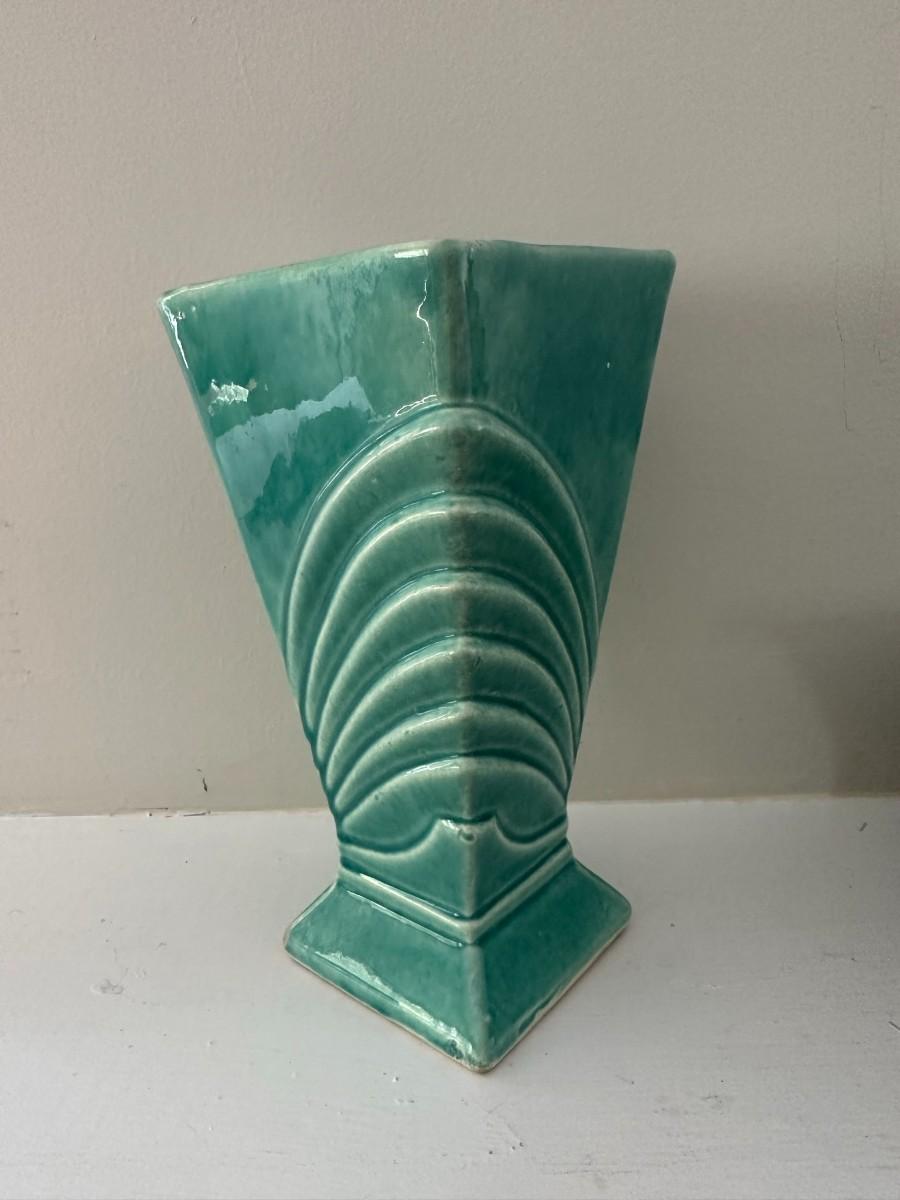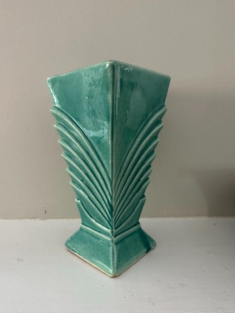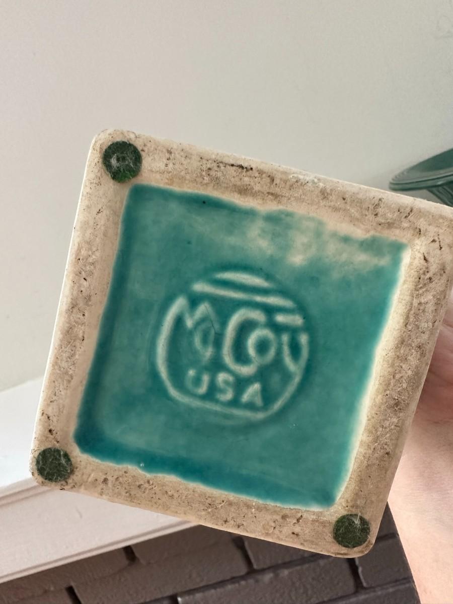 8"h McCoy Hourglass Vase, 9"h Flared McCoy Vase, 5.5"h Vase - USA, 8"w x 4"h Green Planter