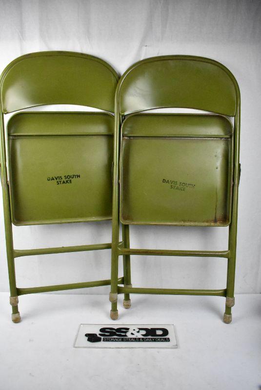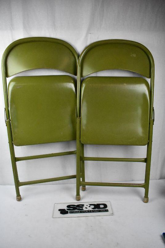 Green Metal Folding Chairs Qty 2