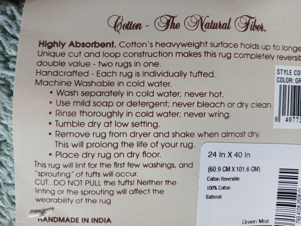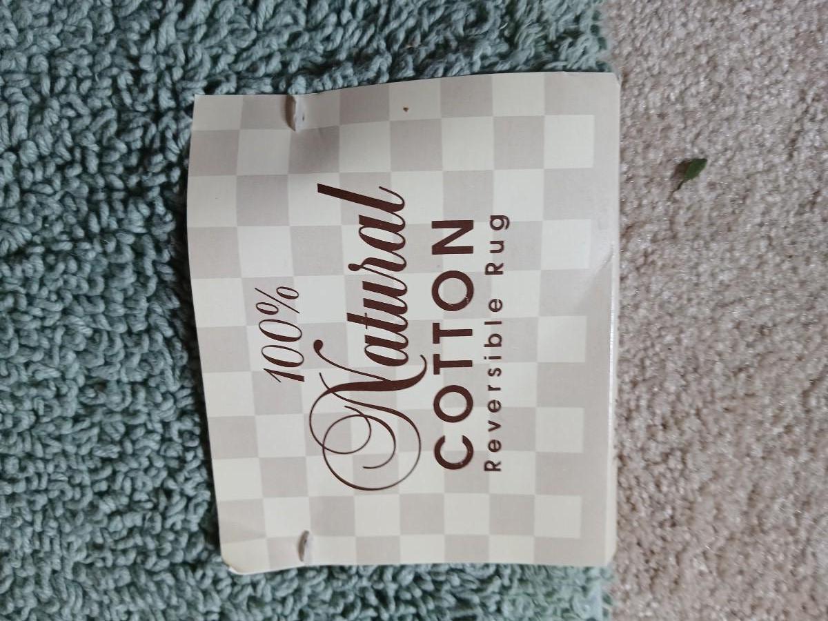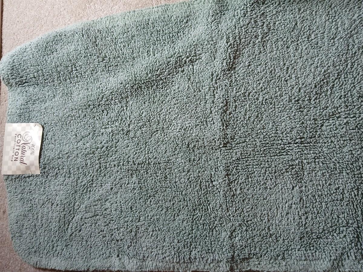 Green Mist bath rug with matching towels and a shower curtain