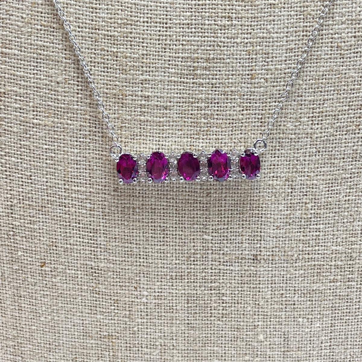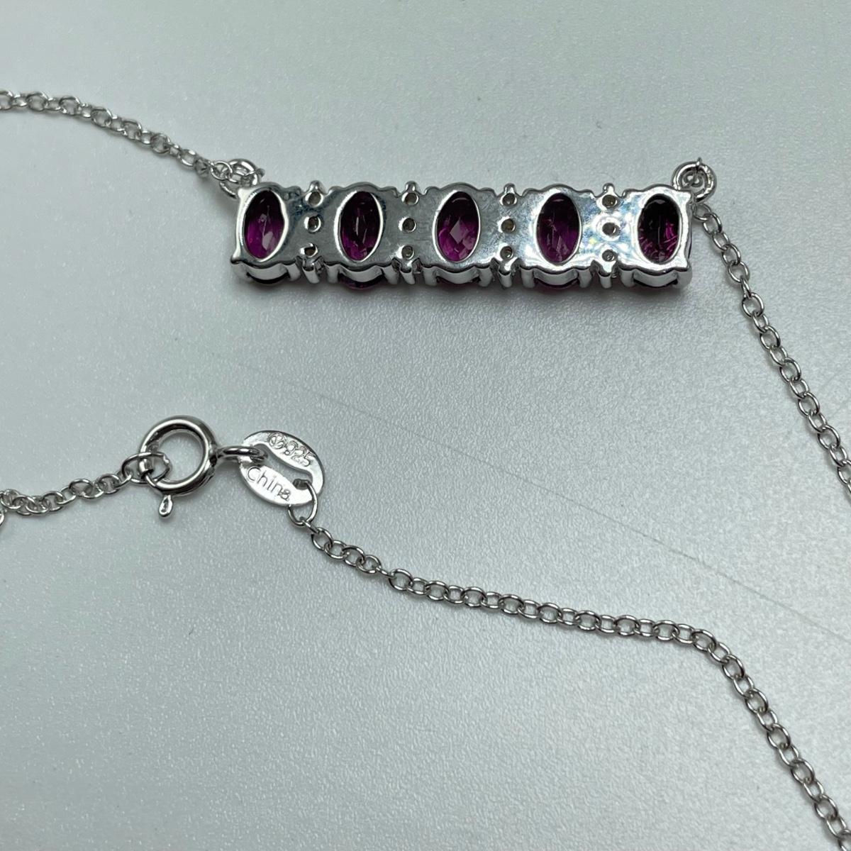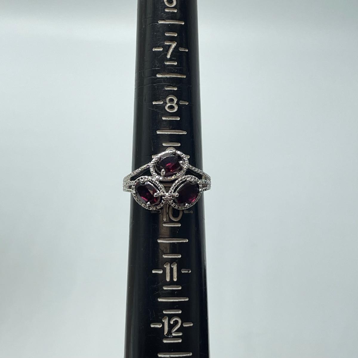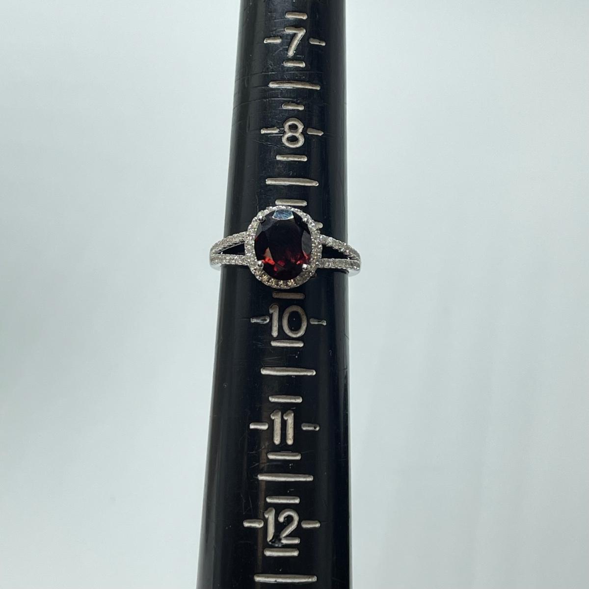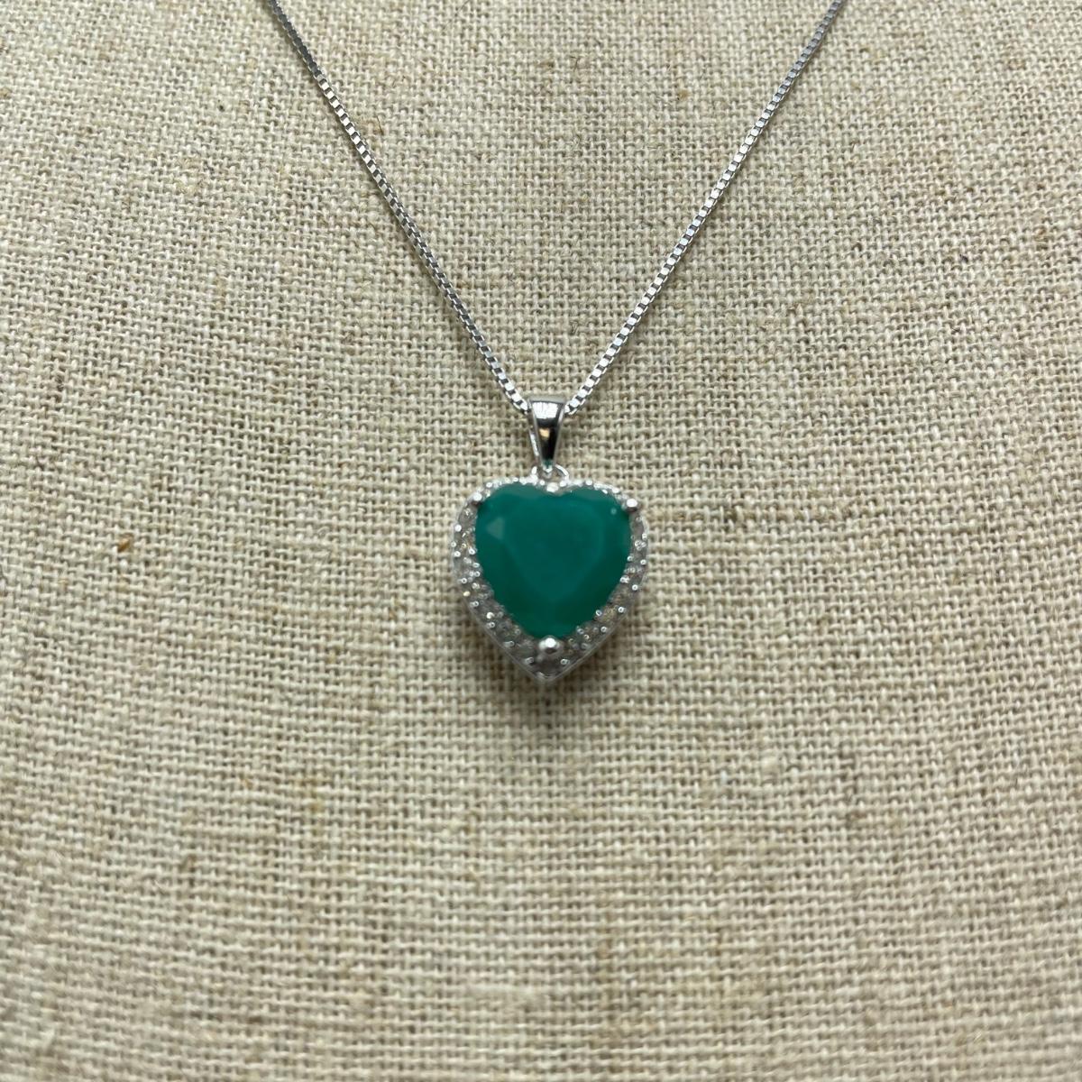 Lot holds a matching ring and necklace set, both marked 925 with heart shaped gems that look like green onyx. Also included are two rings and another necklace also marked 925. Note from the previous owner suggests the gems are red zircon and raspberry rhodolite. Please see photos for all markings found. We cannot guarantee the authenticity of the gemstones. All sales are final. No returns or refunds. Please bid accordingly.