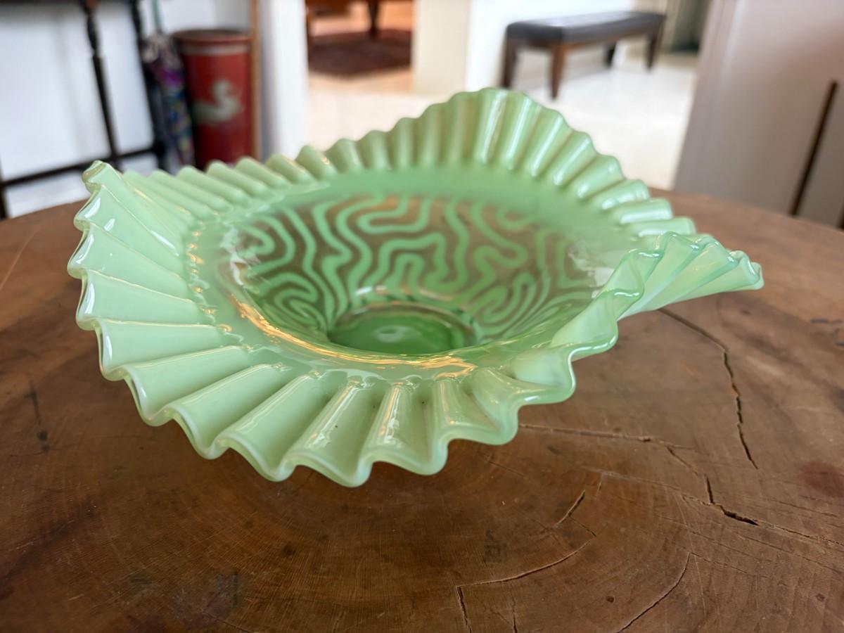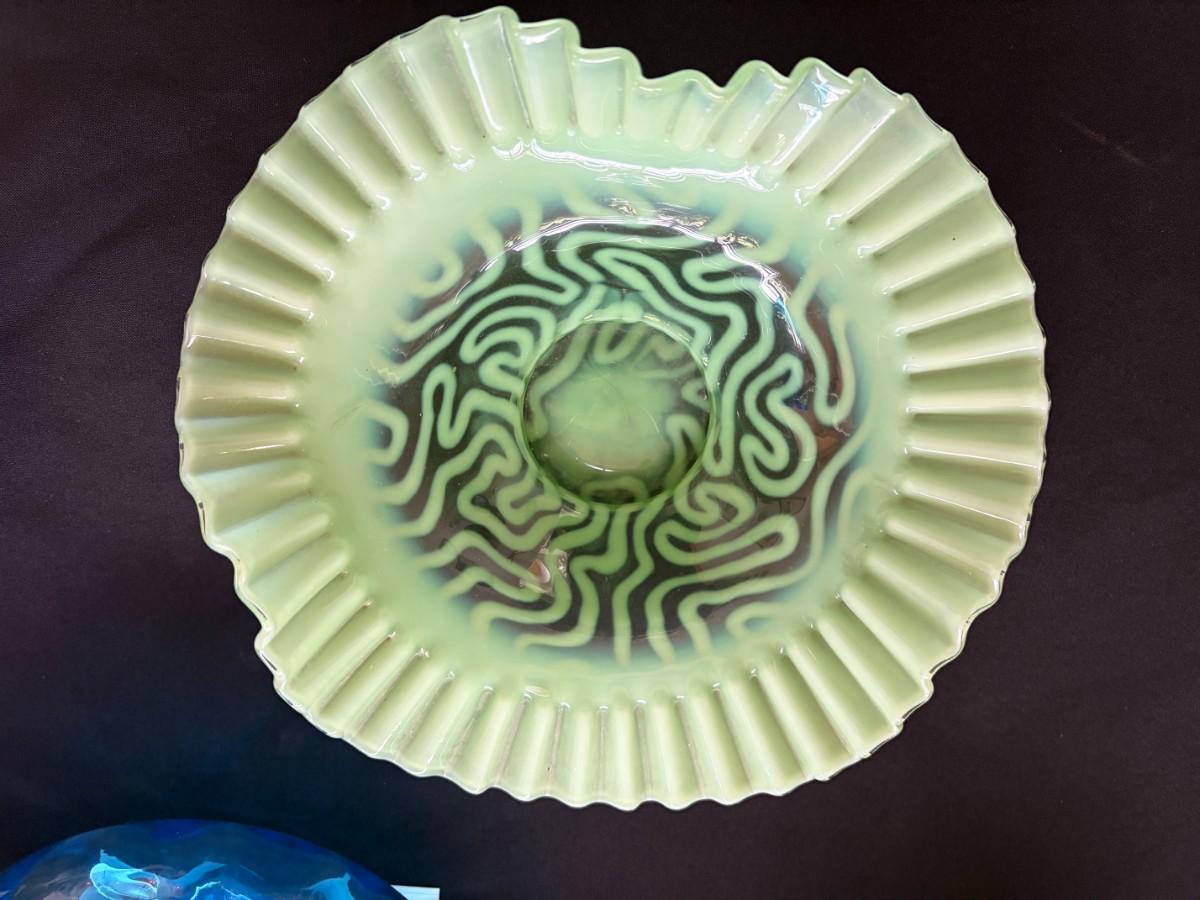 Green opalescent swirling maze bowl