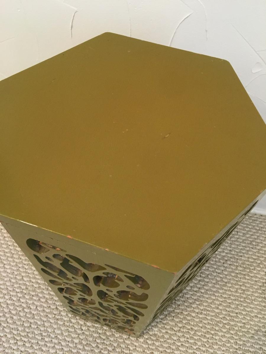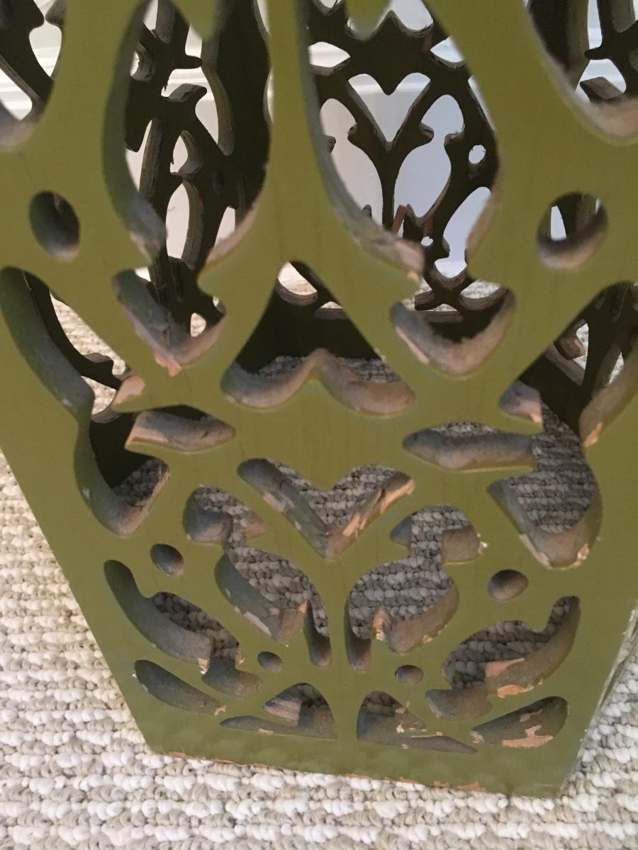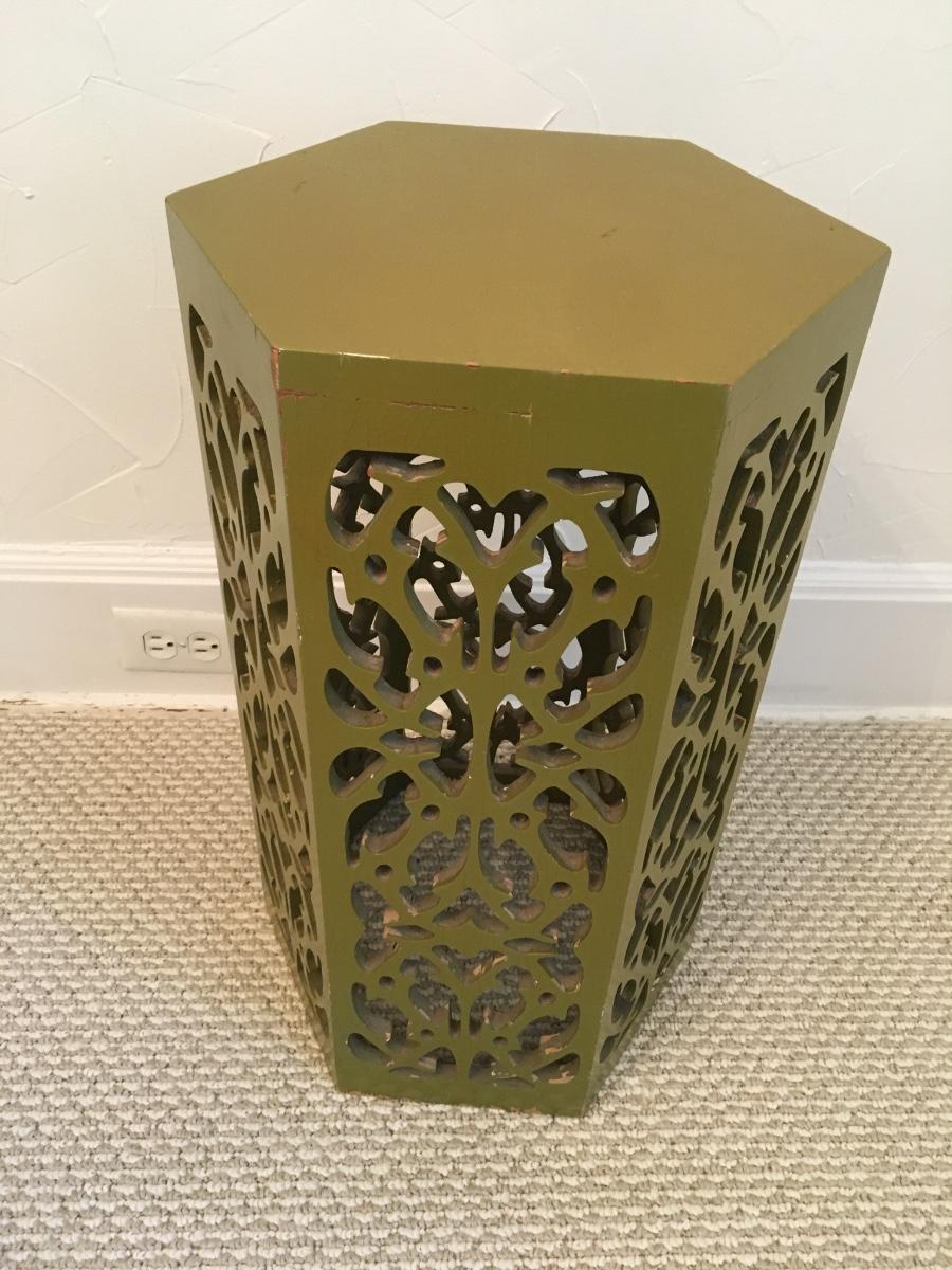 Carved accent table with some signs of wear, but lots of life left!