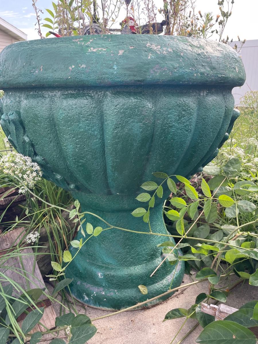 Green painted fountain with decoration