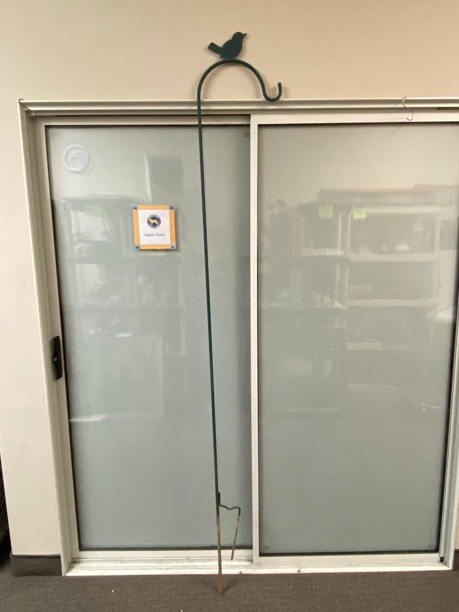 Green Painted Metal Garden Hook. Over 6’ height. PICK UP AT OUR BREA OFFICE.