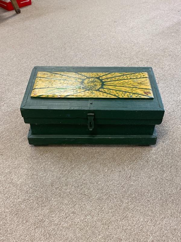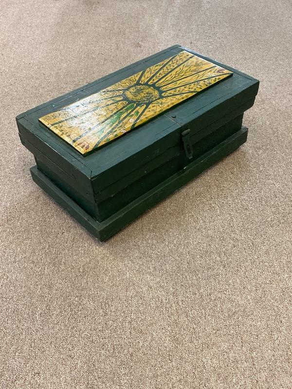 Green Painted Wood Box with Painted Top