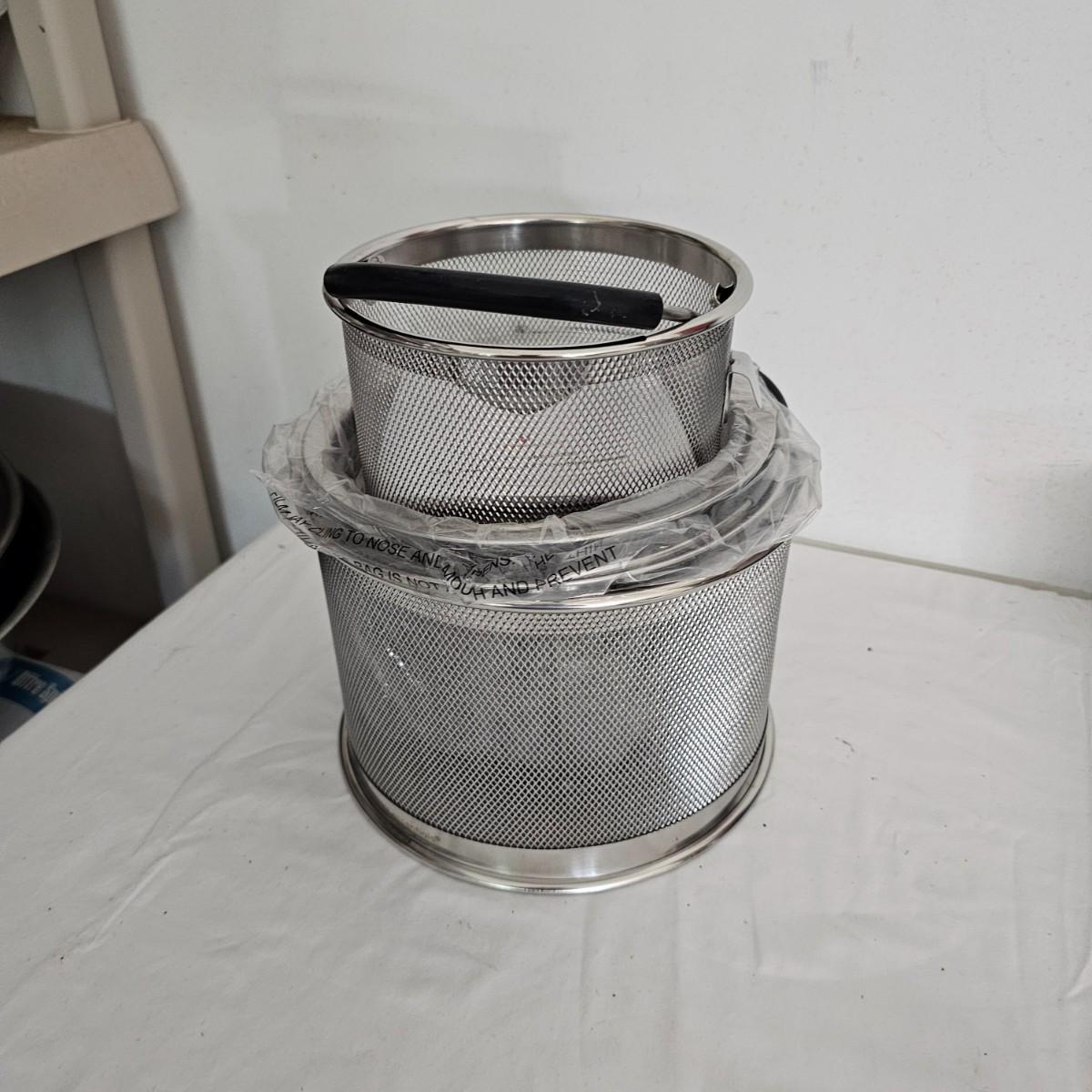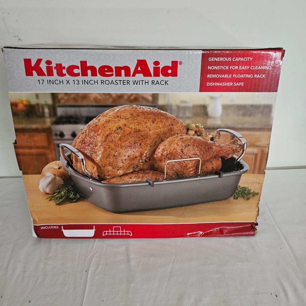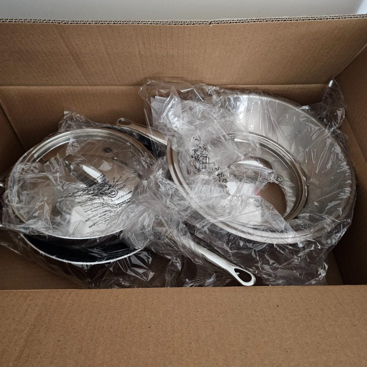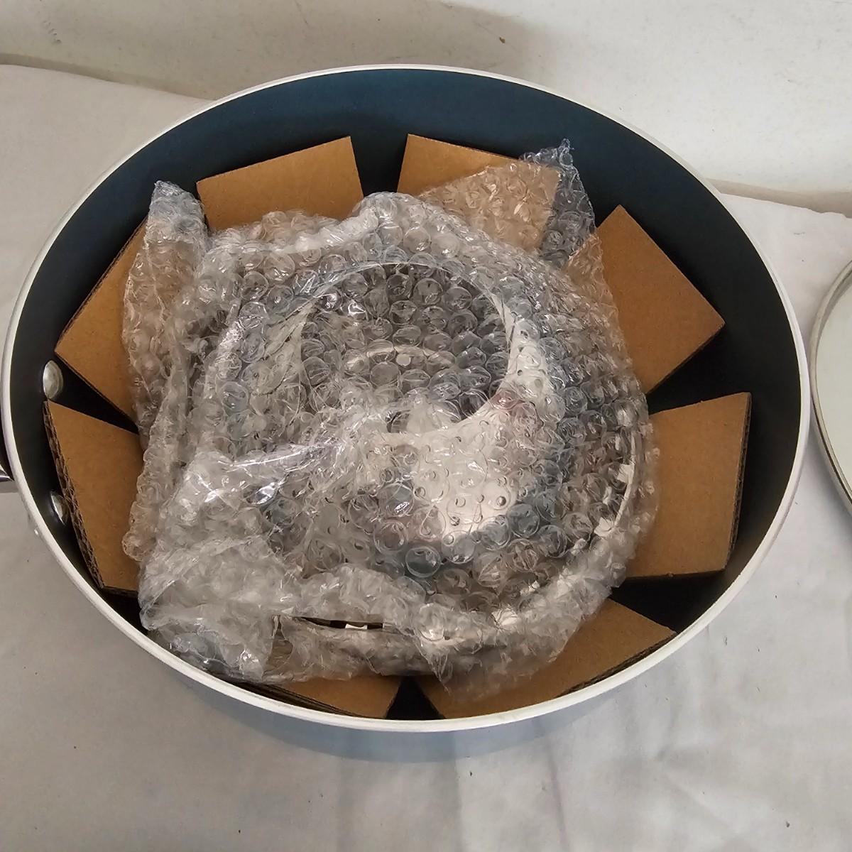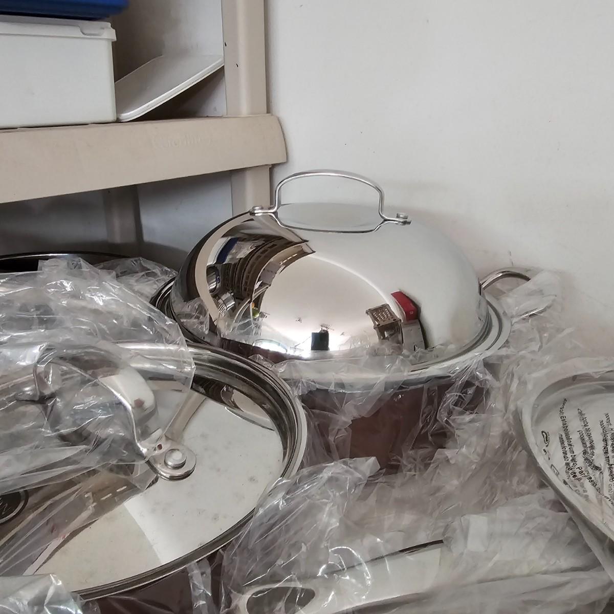 Name brand items of non-stick cooking surfaces. Set of six Green Pan skillets, fryers, pots and lids. 10", 10.5" and 12"D skillets and 6" and 8"D pots. A set of four Cooks Essentials strainer baskets, largest is 9"D. Also a 10" and 10.5"D fry pan, one with an egg cooking top and a vegetable steamer basket. One Tramontina 11.5"SQ grill and a Kitchen Aid 17" x 13" roaster with rack. All items appear to be new in box. See photos for details. Local pickup only.