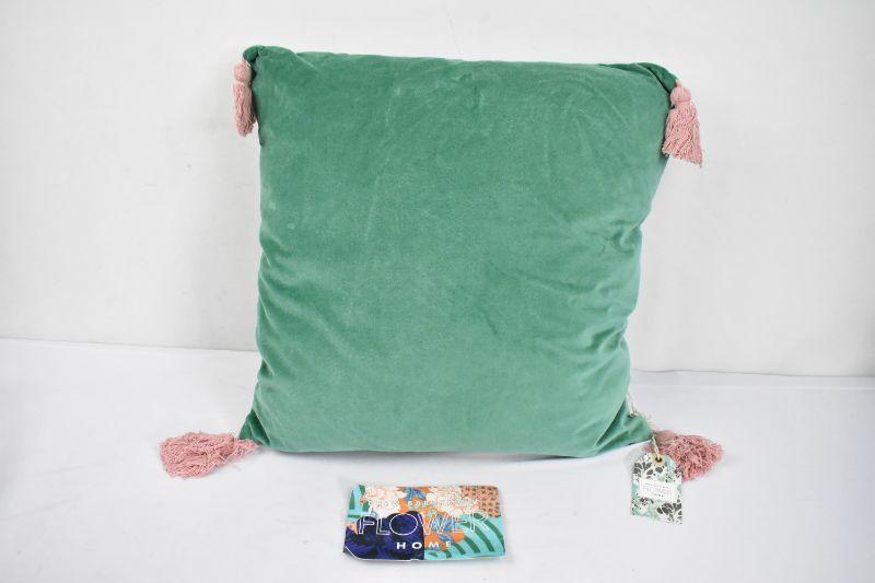 Green Pillow with Pink Tassels by Drew Barrymore Flower Home - New