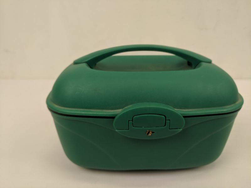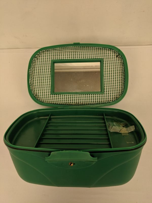Green Plastic Locking Box with Key, 9" x  6.5" x 6"