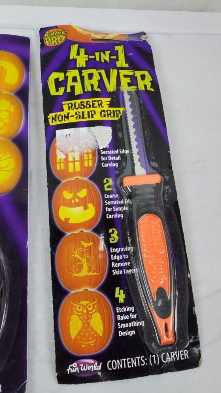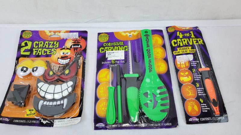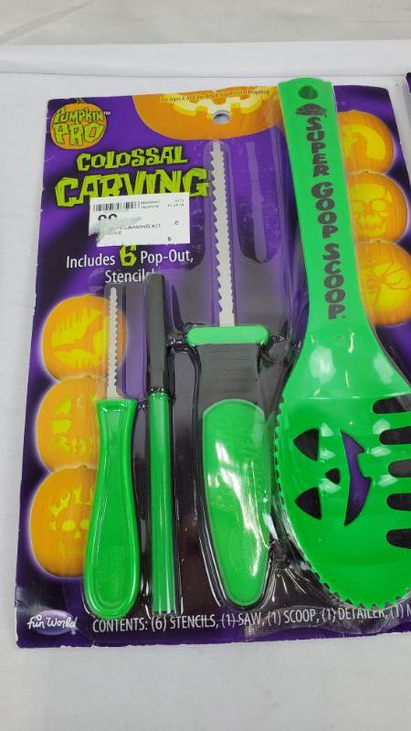 Green Pumpkin Carving/Decorating Kits, 2 Crazy Faces, Universal Carving Kit, 4-in-1 Carver - New