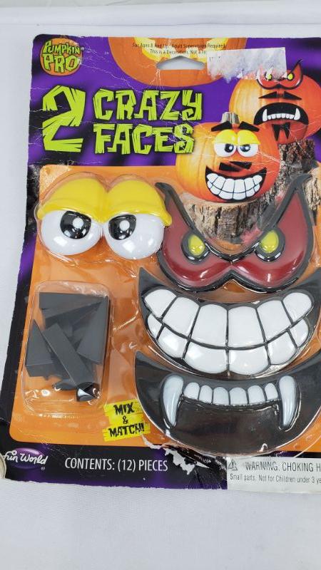 Green Pumpkin Carving/Decorating Kits, Crazy Faces, Carving Kit, 4-in-1- New