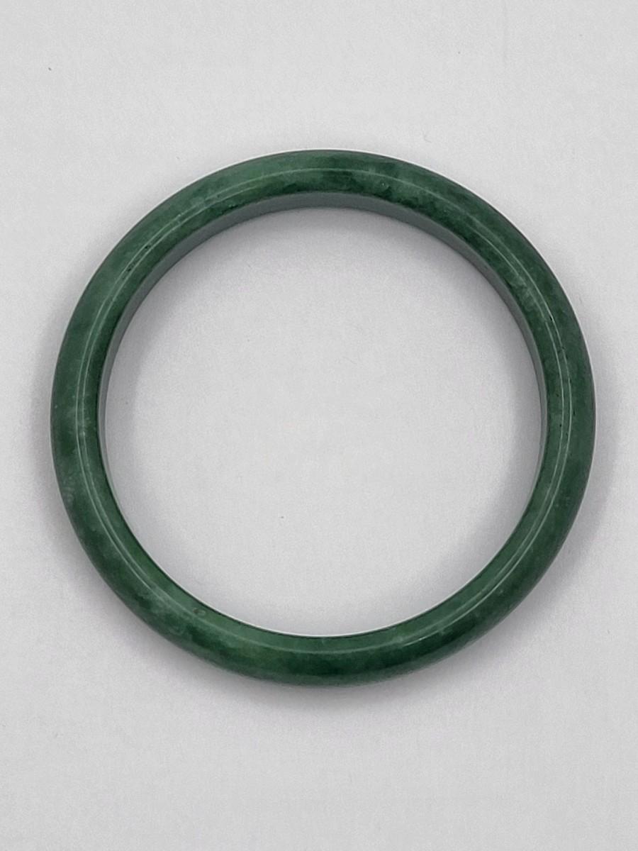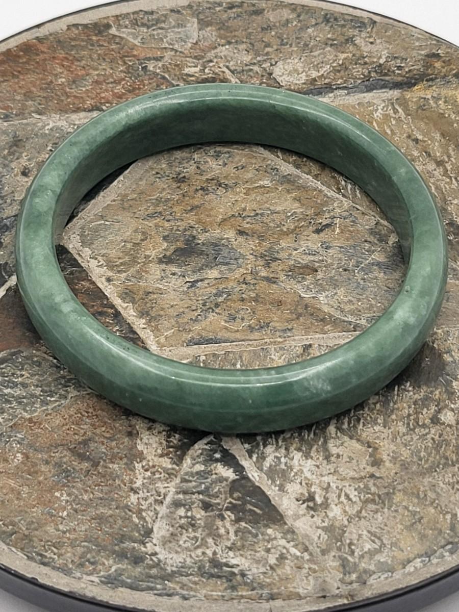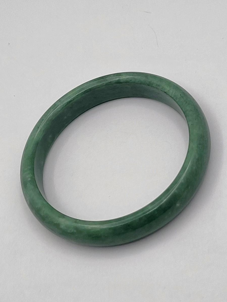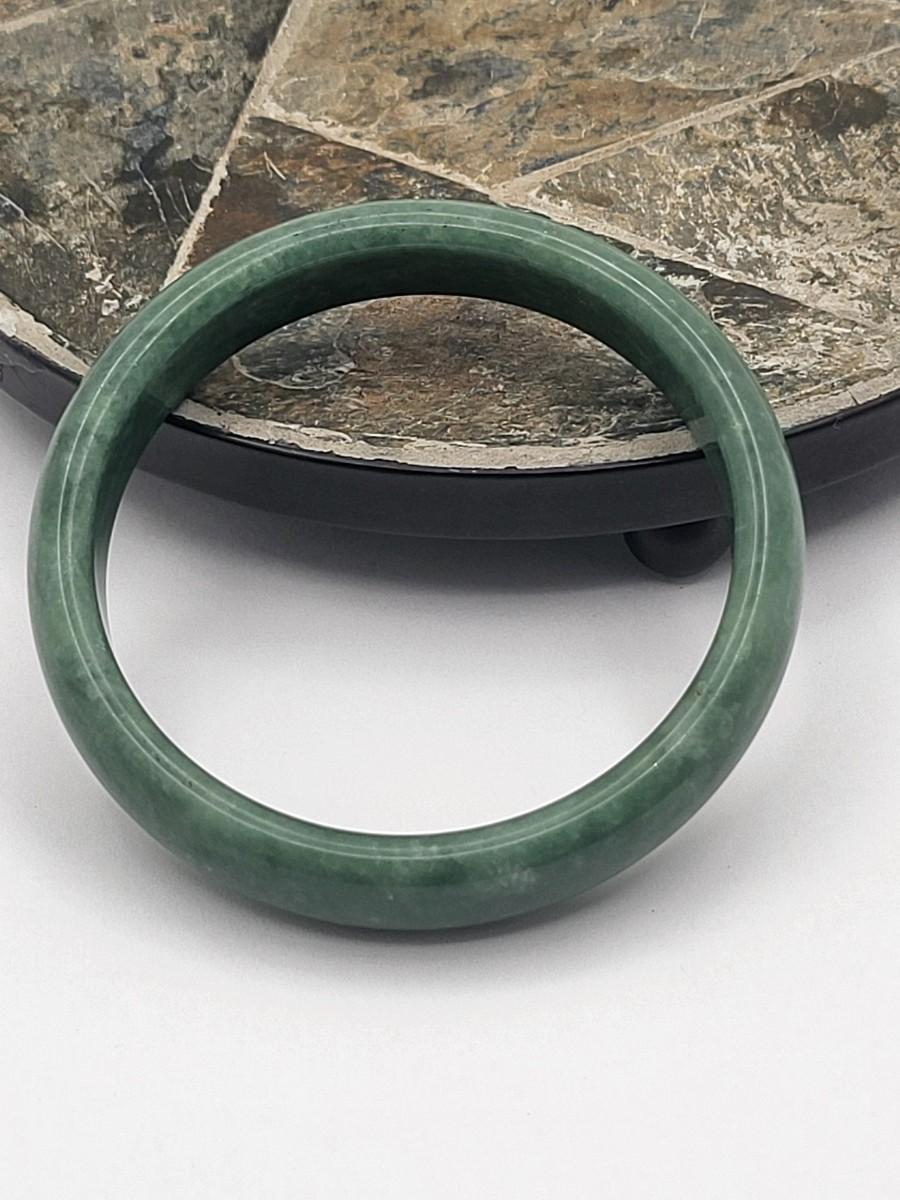 Heavy green quartz stone bangle weighs 44 grams. Measures .5" wide and 2.5" inner diameter. Fits average size wrist. This bangle is high quality and would look great layered with other bracelets.