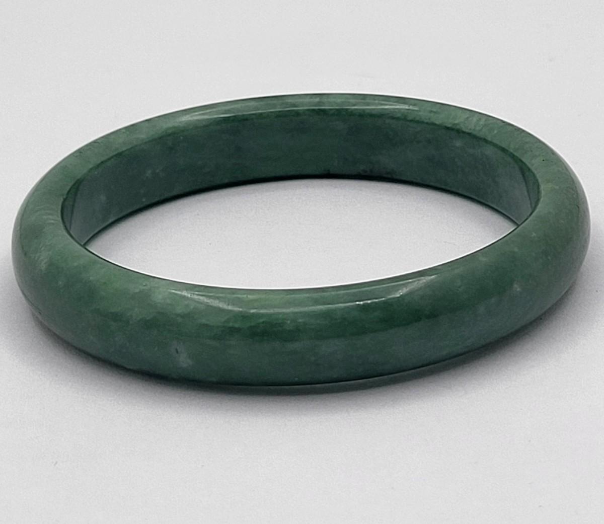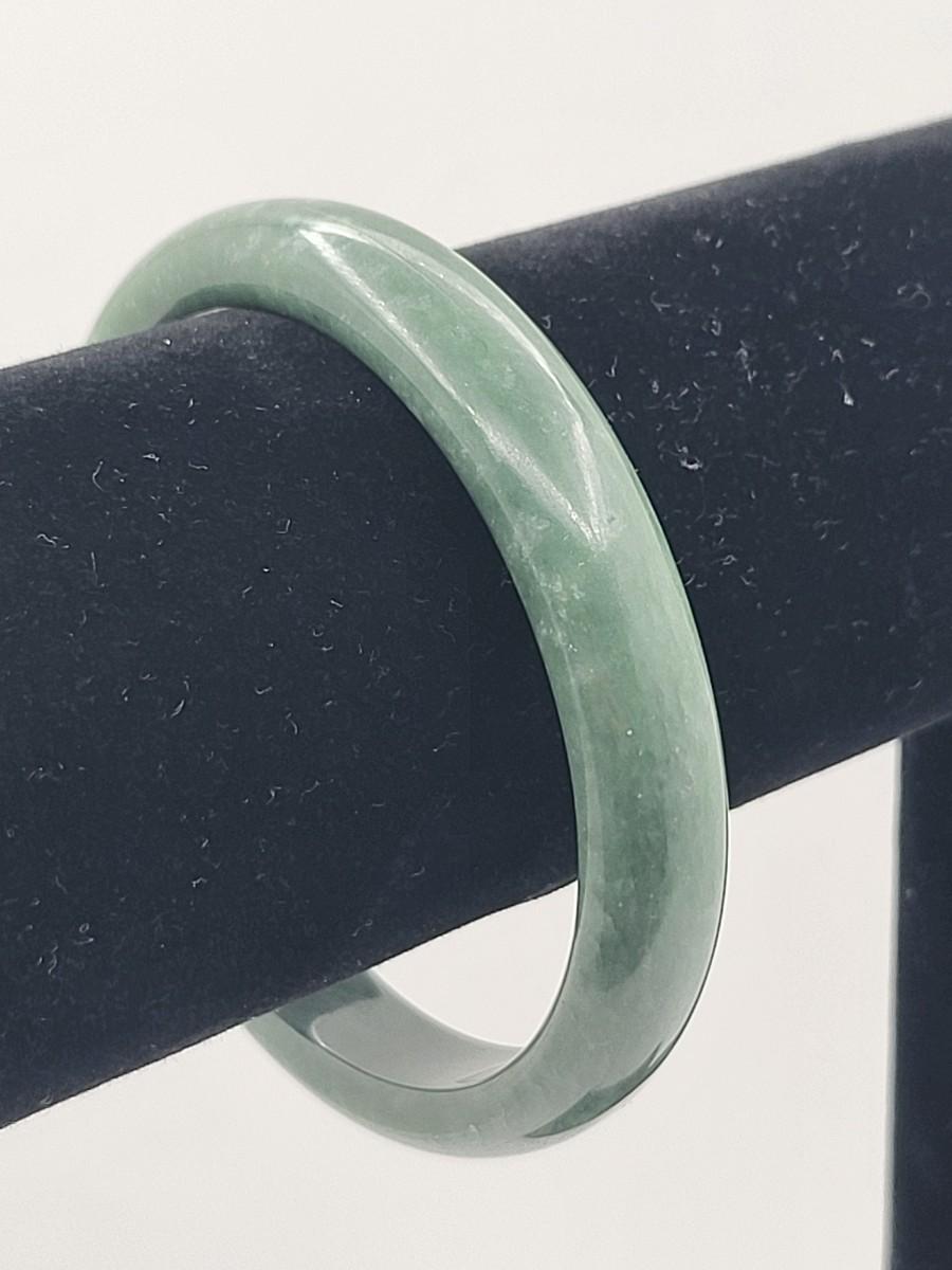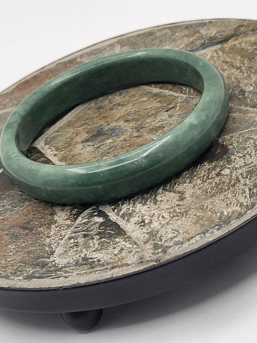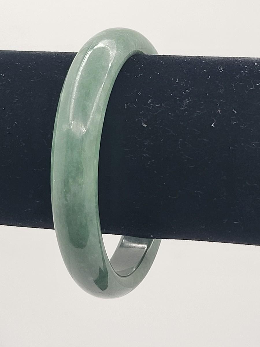 Heavy green quartz stone bangle weighs 44 grams. Measures .5" wide and 2.5" inner diameter. Fits average size wrist. This bangle is high quality and would look great layered with other bracelets.