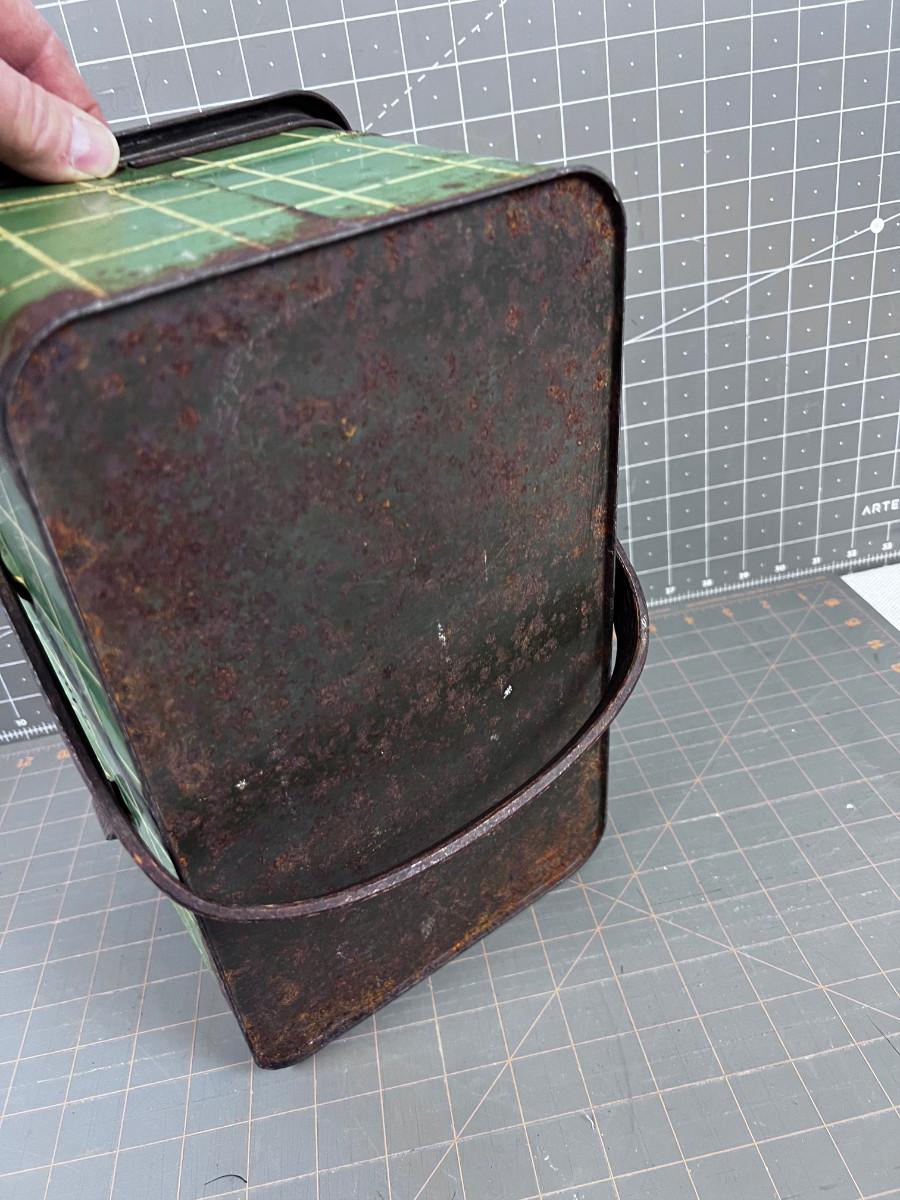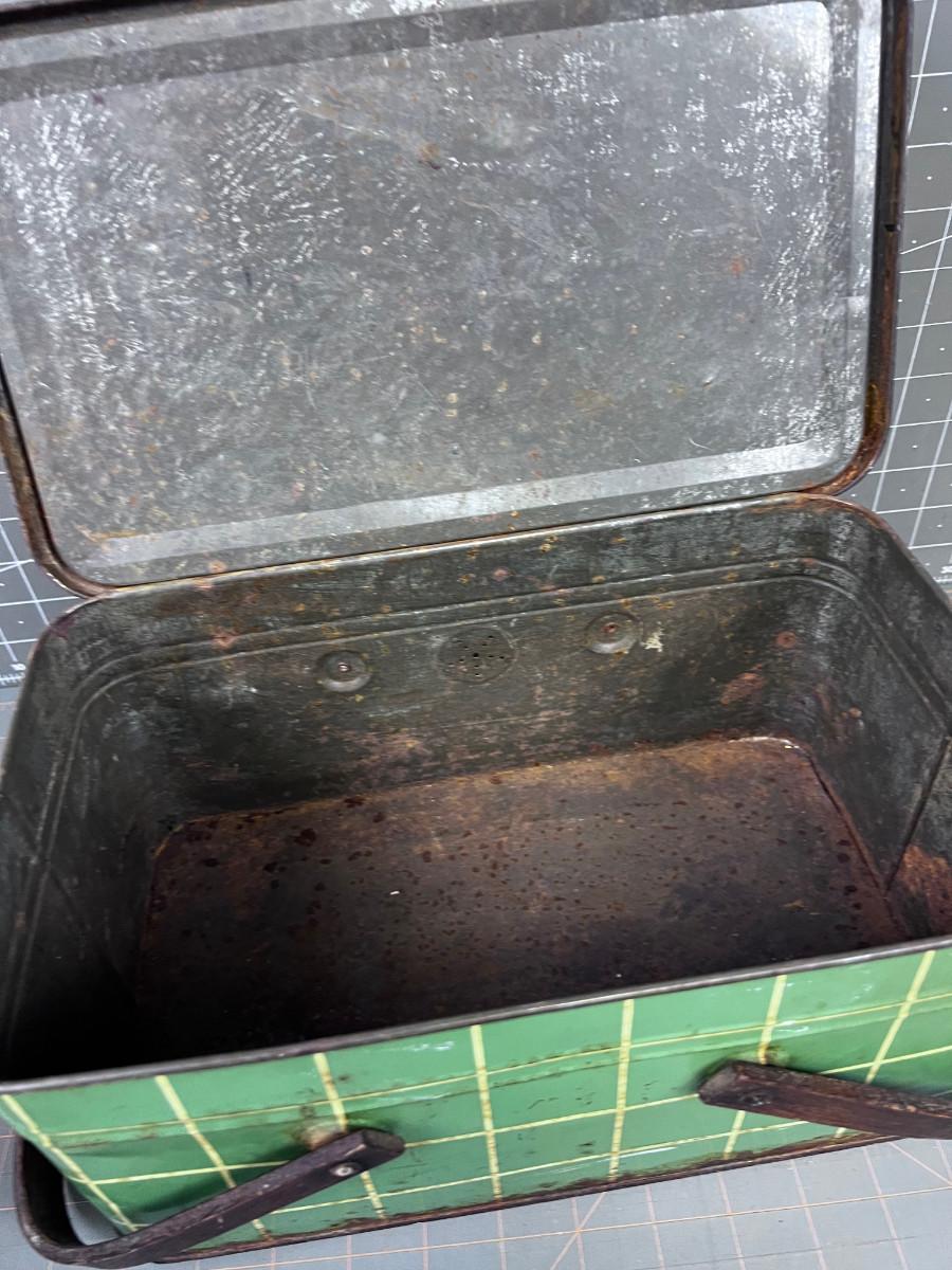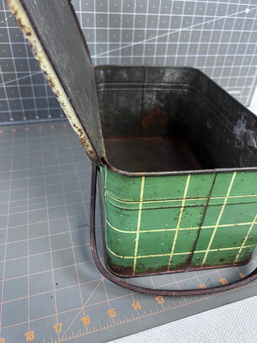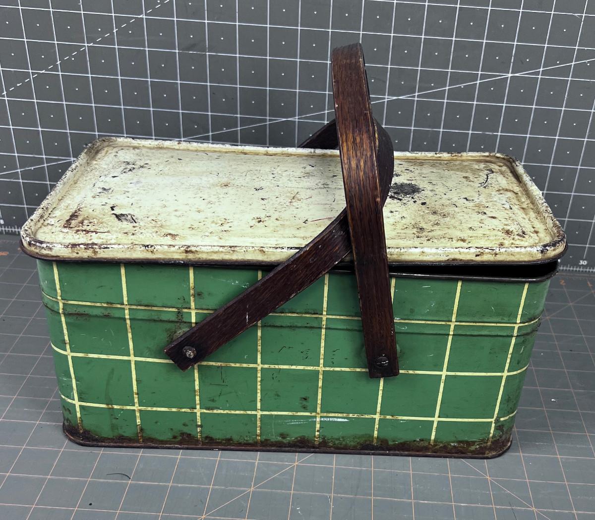 Green Sage Colored Tin Picnic Basket With Handles, ANTIQUE