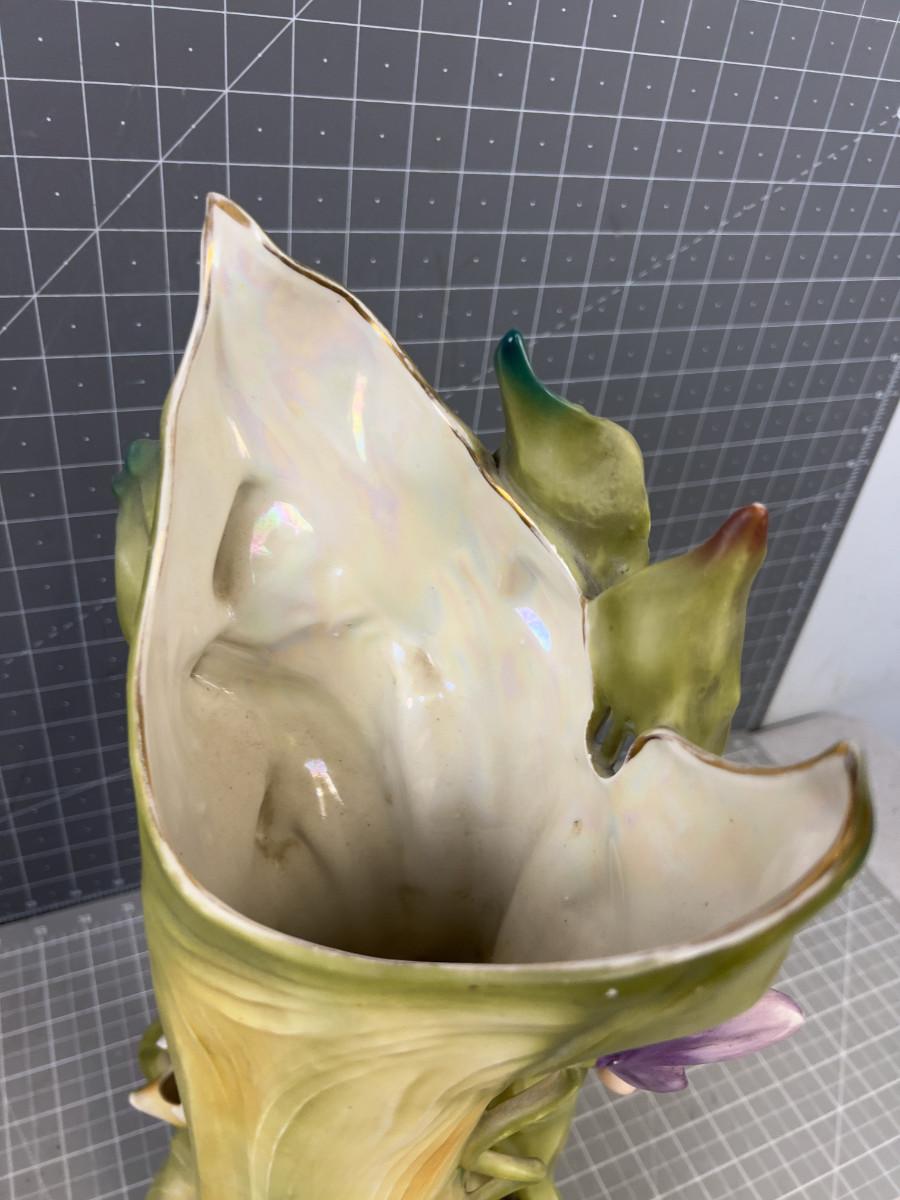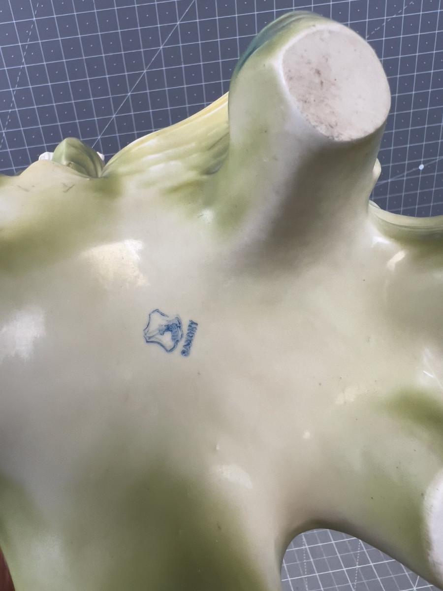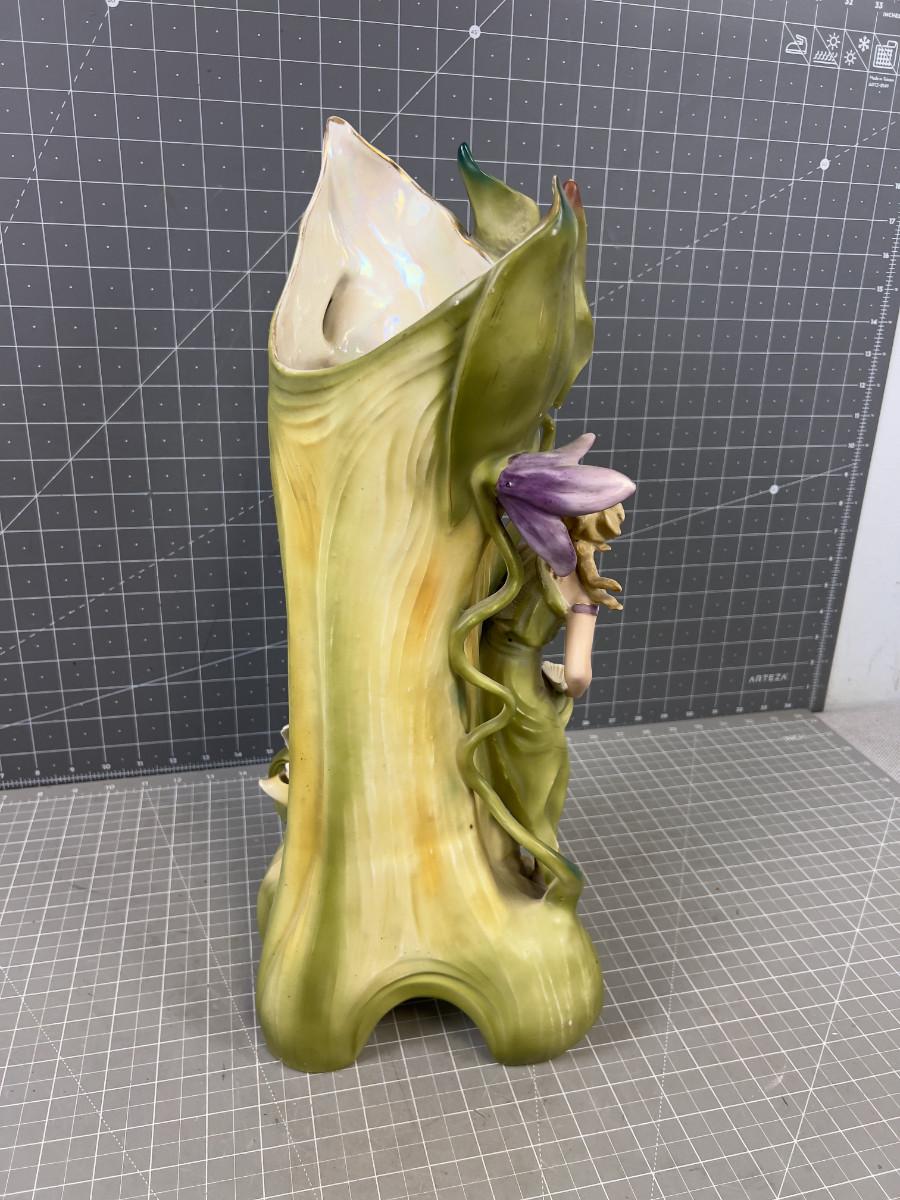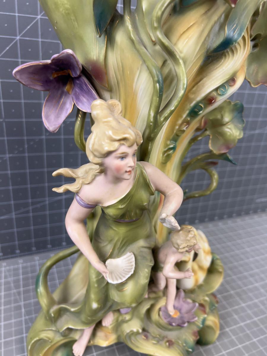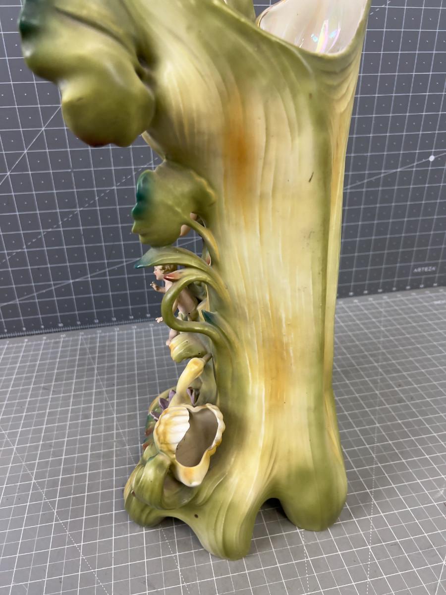 Green, Saxony Art Nouveau Vase Cherub and Swans