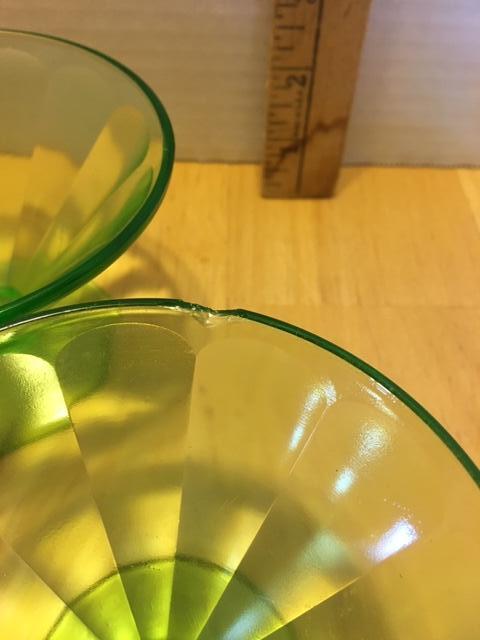 Green slopped design dessert cups ( one has a chip, pictured)