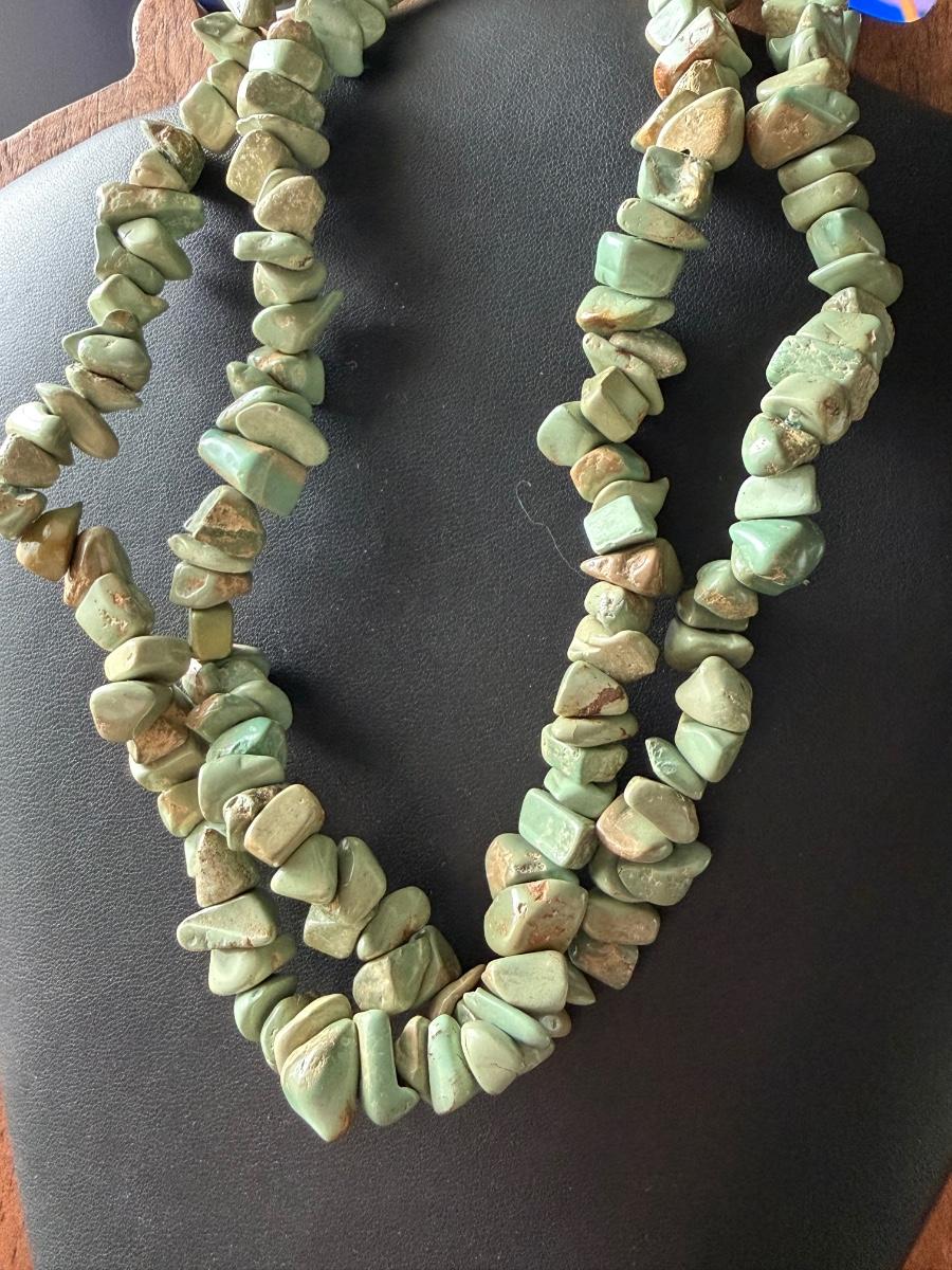 Green stone chips beaded necklace
