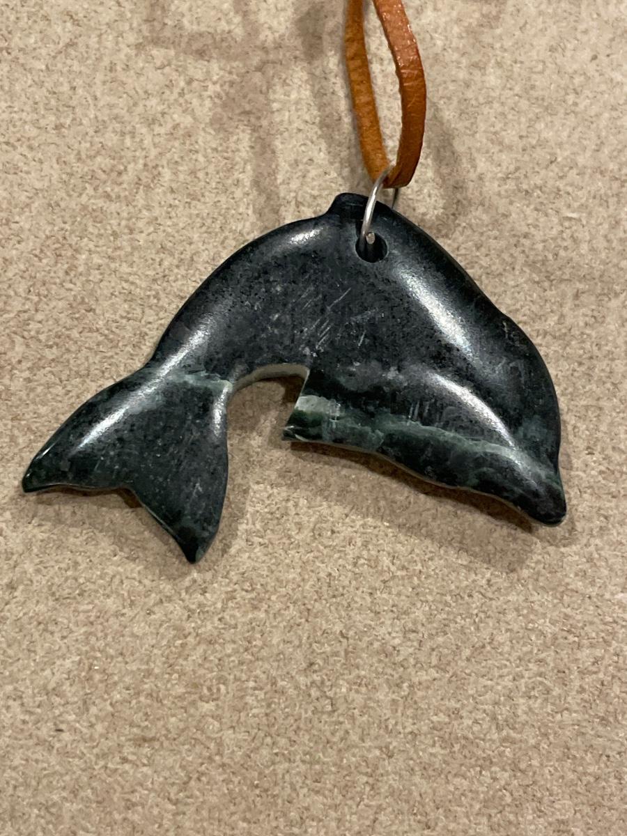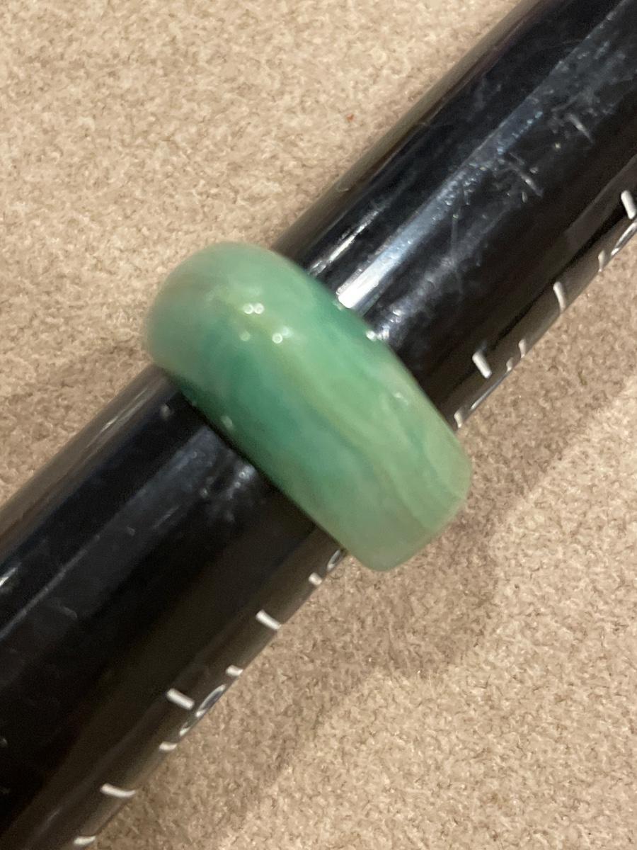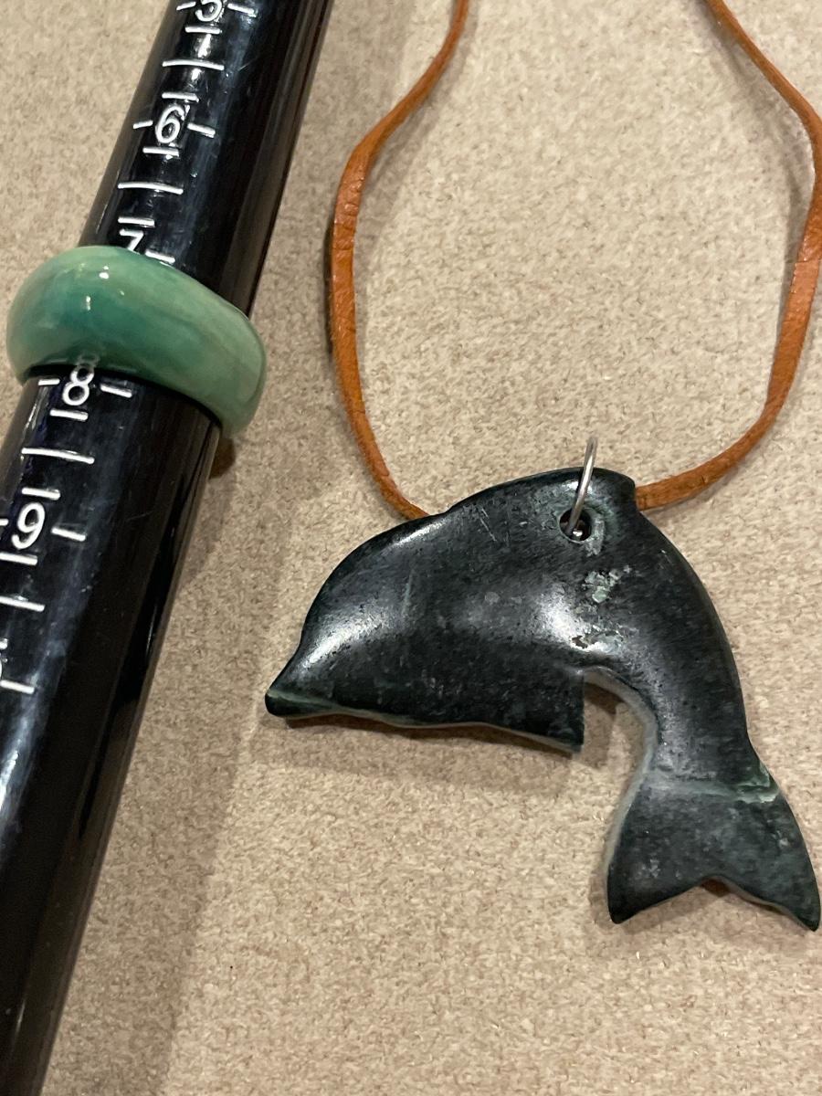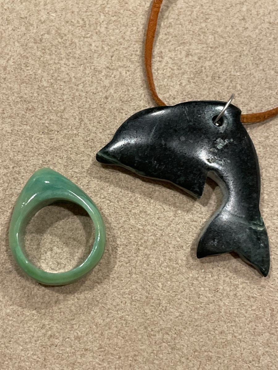 Green stone dolphin and jade ring