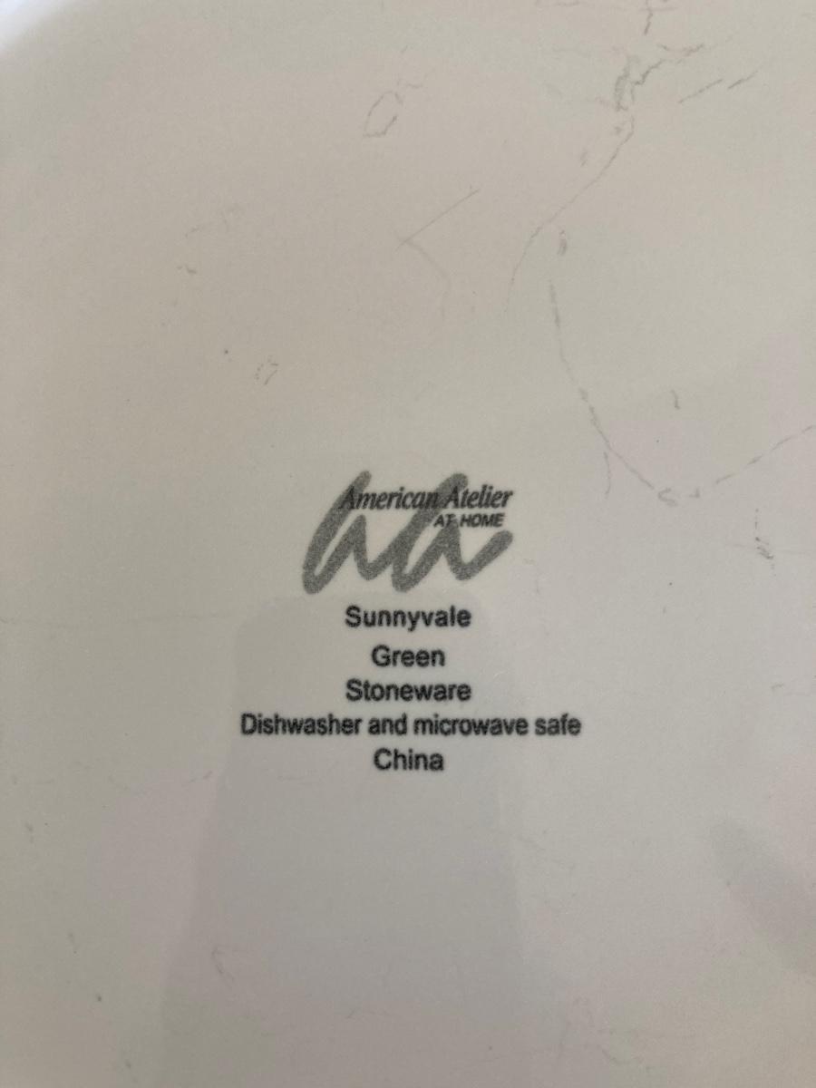 These are Sunnyvale Green Stoneware Plates. They are dishwasher and microwaveable safe.