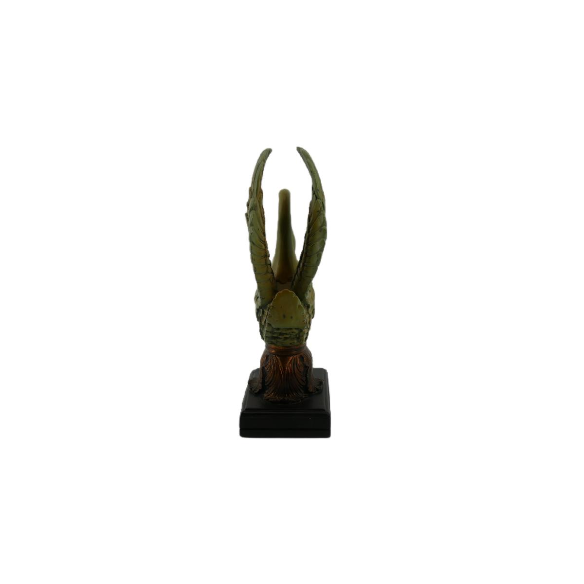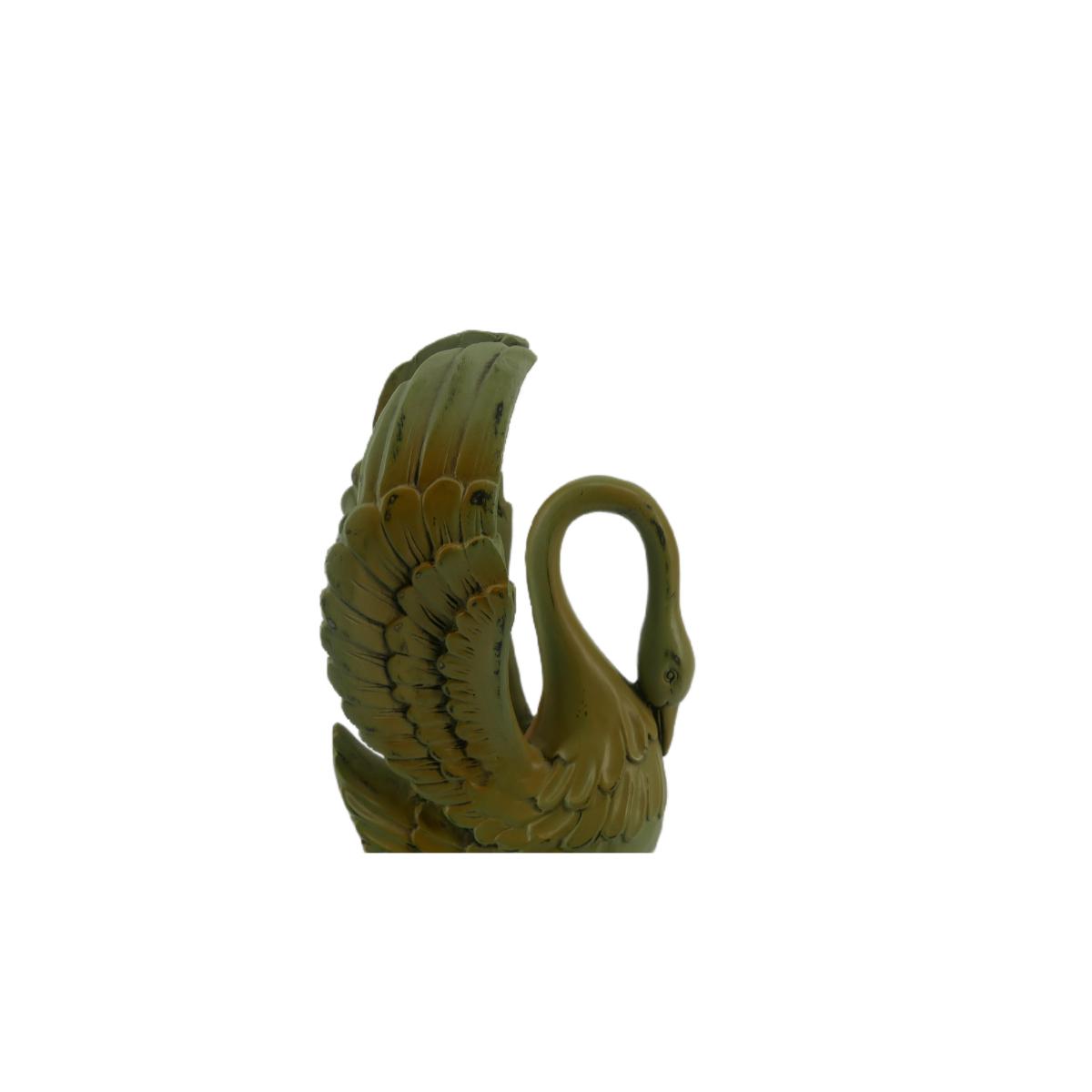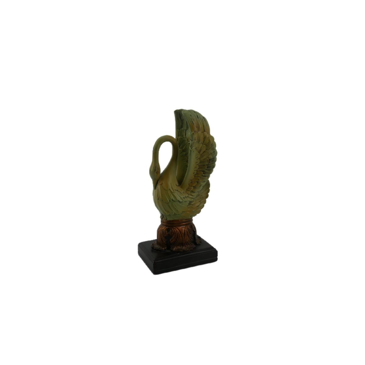 Green swan on pedestal table statue. Made of plaster, excellent condition. Measures L 4.5" x H 10.5" x W 3.25", weighs 3 lb 5 oz. (D89)